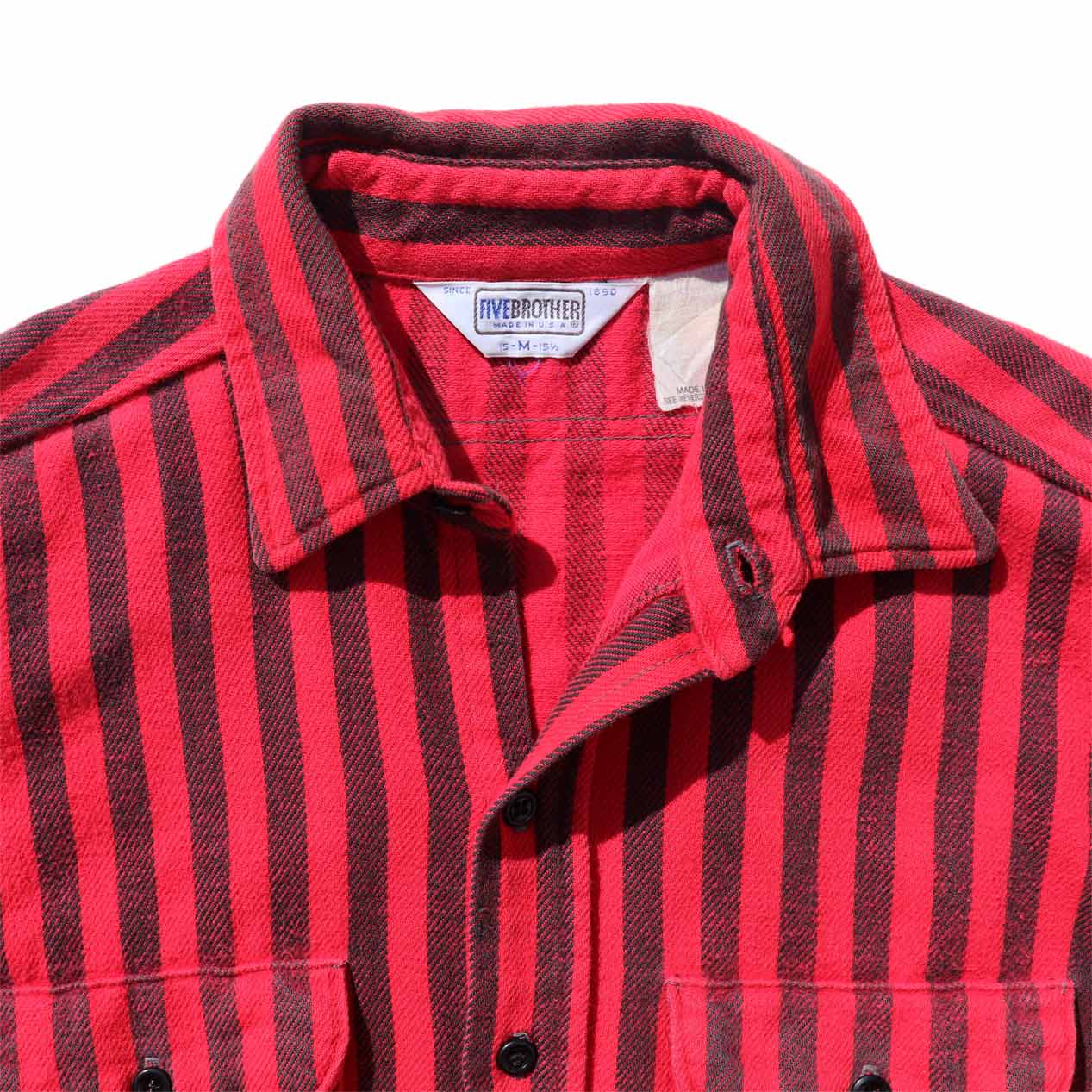 MODEL : FIVE BROTHER Red / Black Striped Heavy Flannel Shirt MADE IN : U.S.A. AGE : 80's SIZE : M COLOR : レッド/ブラック MATERIAL : コットン 100% COMMENT : 80年代 ファイブブラザー