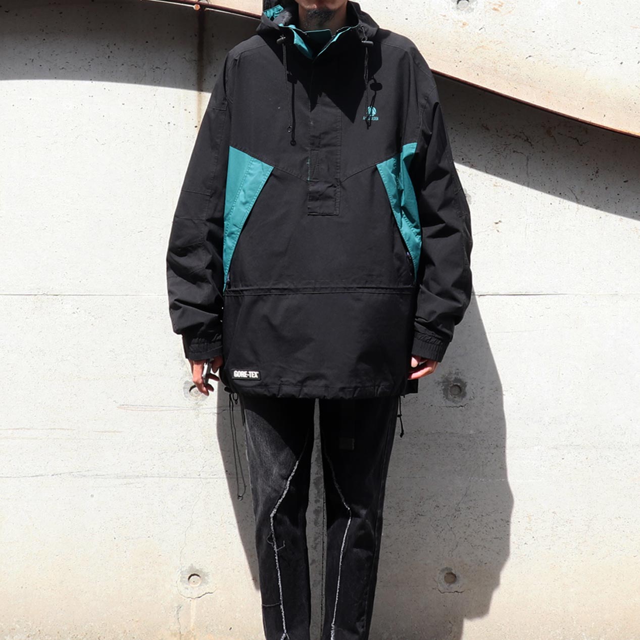 MODEL : ALPINE DESIGN “BLACK” Gore-Tex Pullover Mountain Jacket MADE IN : Hong Kong AGE : 90's SIZE : L COLOR : ブラック/エメラルド MATERIAL : 表地 : ポリエステル 100% / 裏地 : ナイロン 100% COMMENT : 90年代 アルパインデザイン