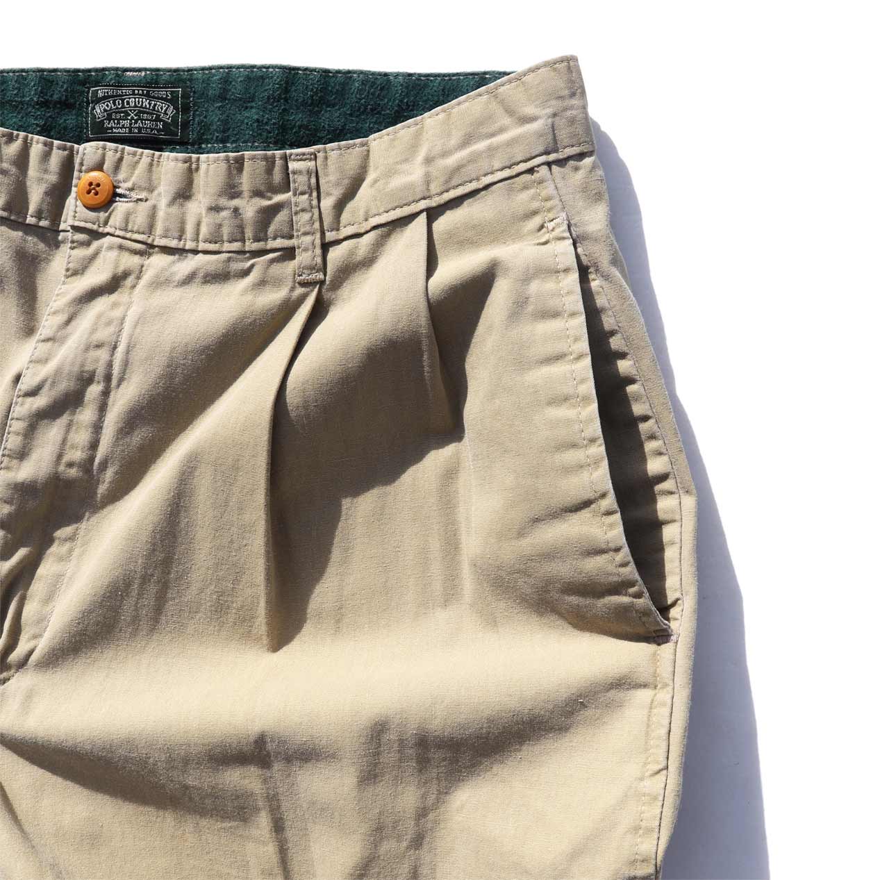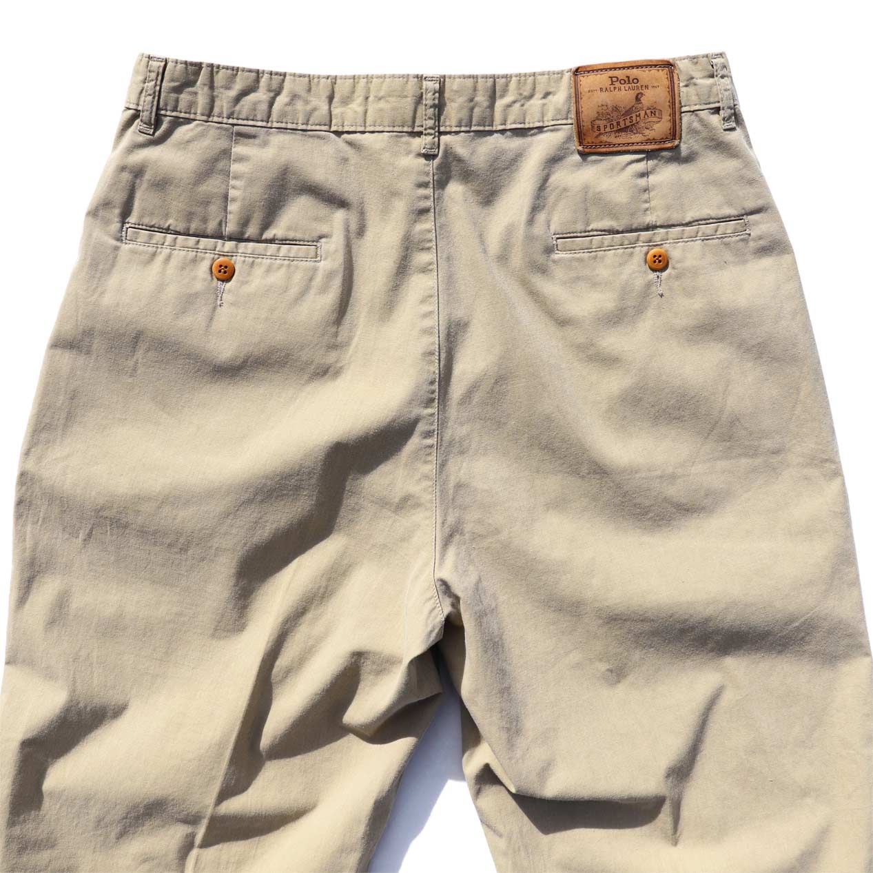 MODEL : POLO COUNTRY RALPH LAUREN SPORTSMAN Cotton Pants MADE IN : U.S.A. AGE : 80's SIZE : W33 / L36 (実寸 : W33 / L33) COLOR : カーキ MATERIAL : コットン 100% COMMENT : 80年代~ ポロカントリー スポーツマン