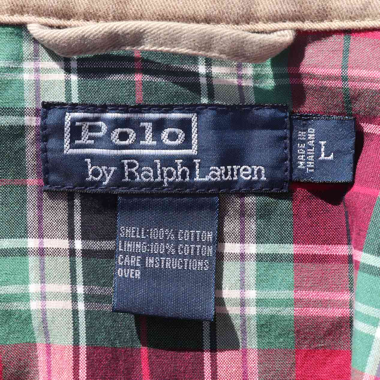 MODEL : POLO RALPH LAUREN Cotton Twill Drizzler Jaclet MADE IN : Thailand AGE : 00's~ SIZE : L COLOR : カーキ MATERIAL : 表地・裏地 : コットン 100% COMMENT : 00年代~ ポロラルフローレン