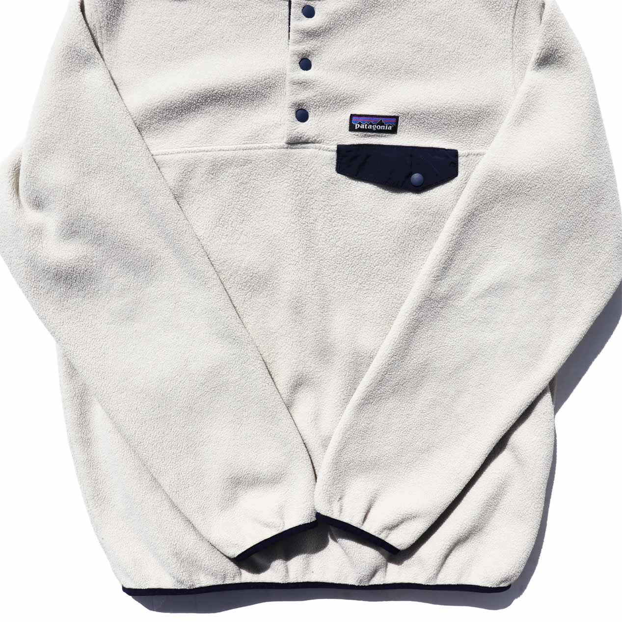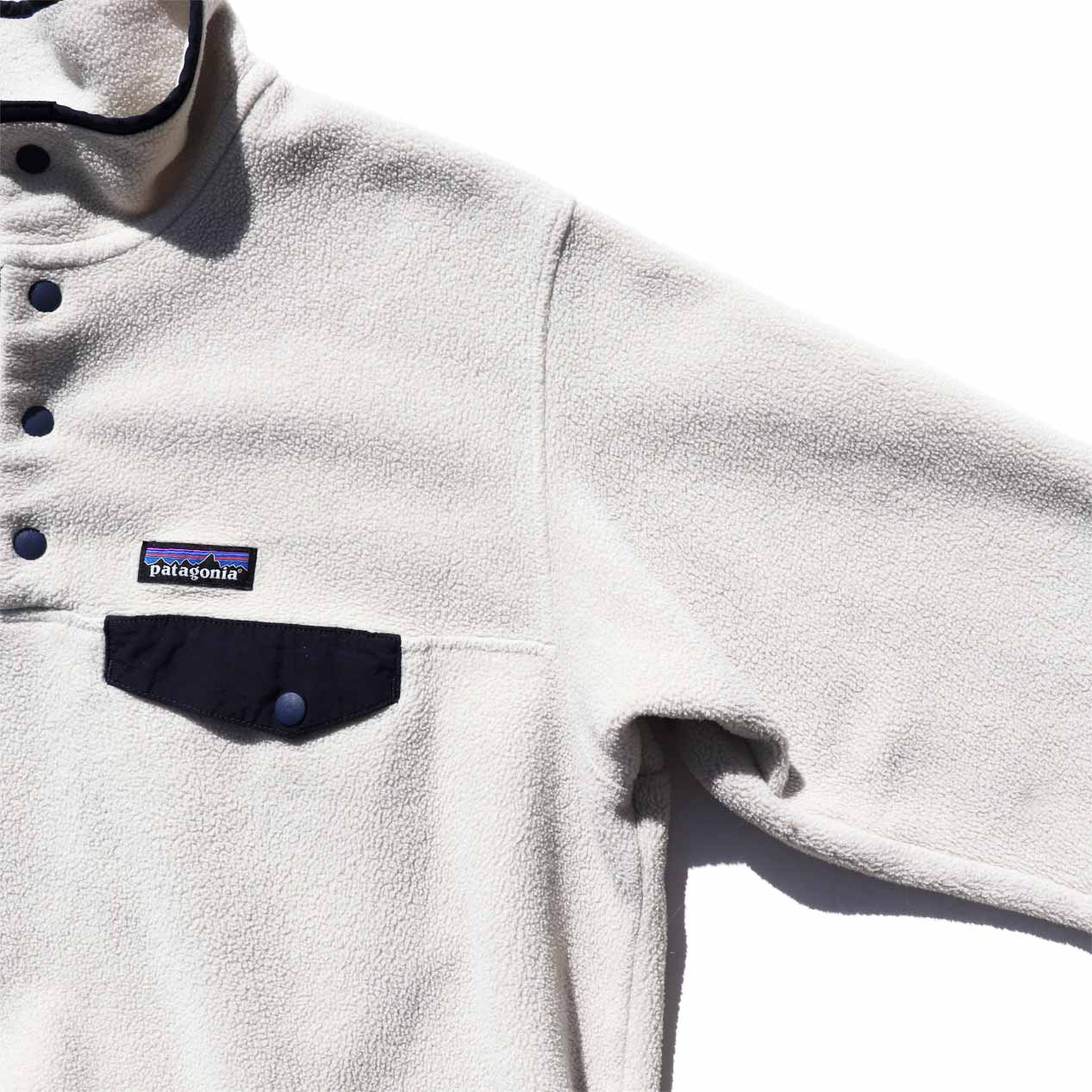 MODEL : PATAGONIA Lightweight Synchilla Snap-T MADE IN : Nicaragua AGE : 00's SIZE : L COLOR : アイボリー/ダークネイビー MATERIAL : ポリエステル 100% COMMENT : 2017年(SP17) パタゴニア ライトウェイトシンチラスナップT