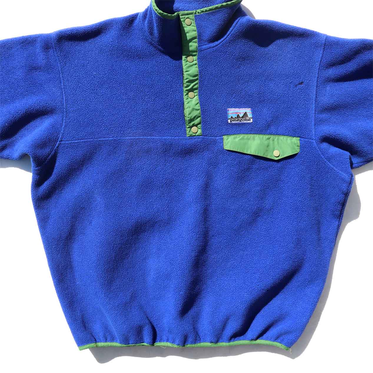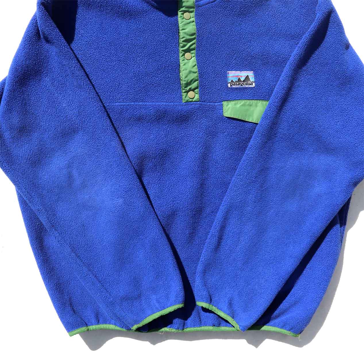 MODEL : PATAGONIA x URBAN OUTFITTERS Synchilla Snap-T MADE IN : Mexico AGE : 00's SIZE : L COLOR : ブルー/グリーン MATERIAL : ポリエステル 100% COMMENT : 2008年(F8) パタゴニア シンチラスナップT