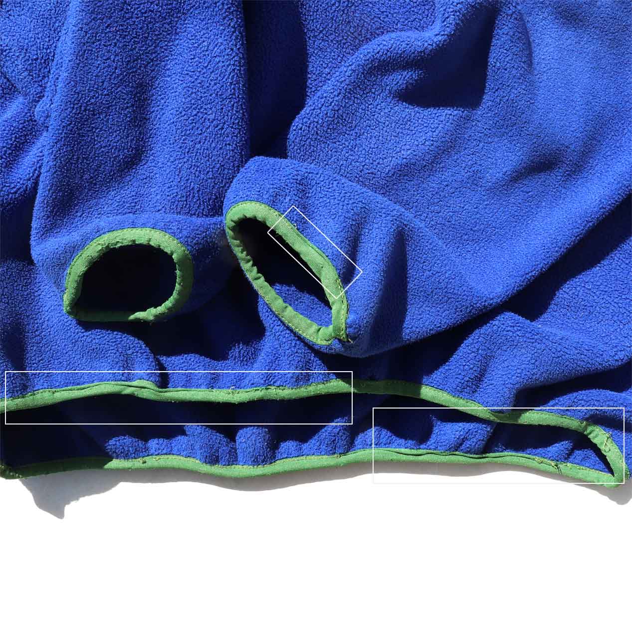・フロント、袖 : 左肩・左裾・左袖にフリース溶け