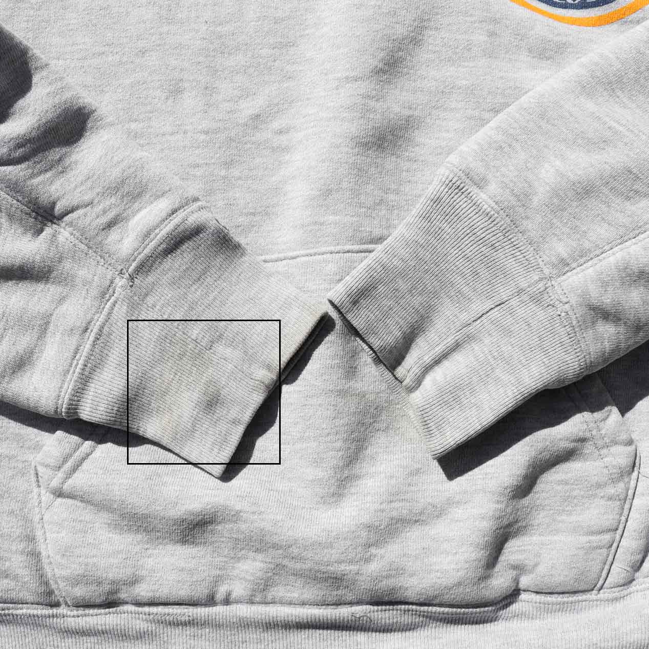 ・フロント、バック、袖 : ポケット、バック左肩付近、右袖先リブに薄い汚れ