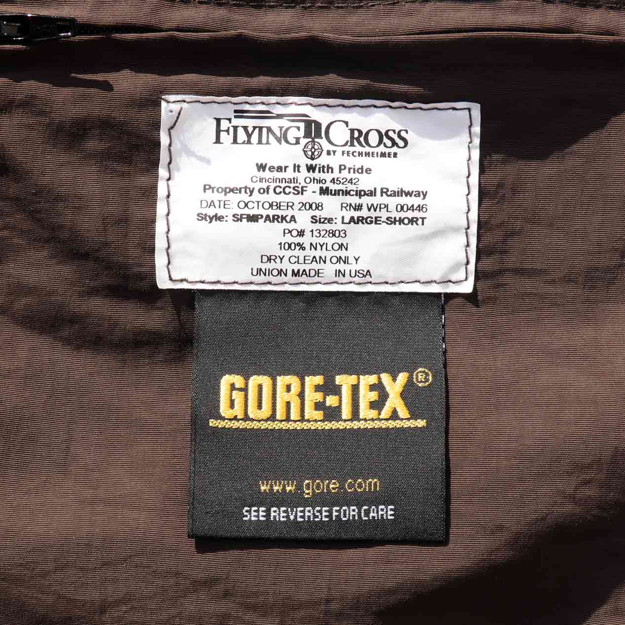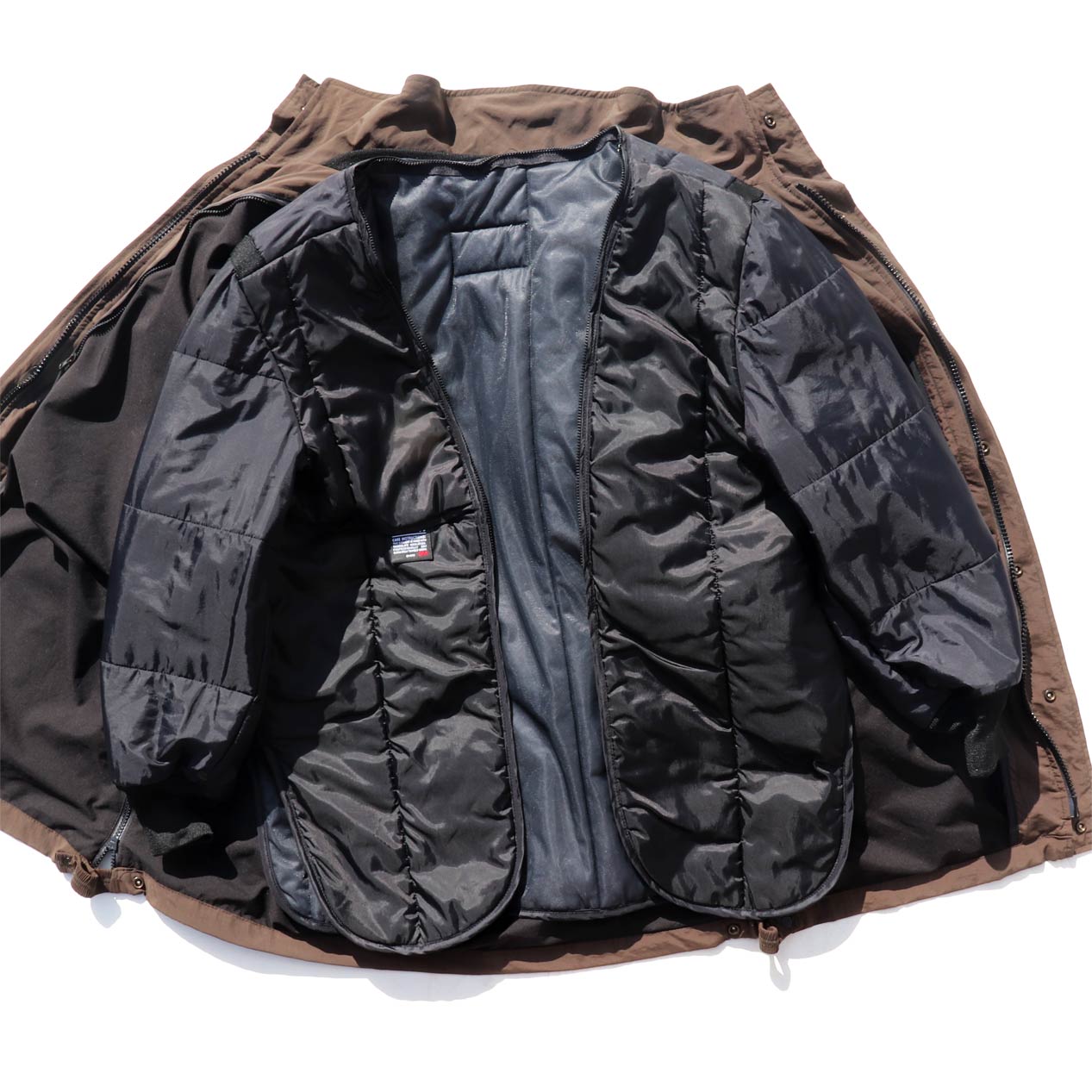 MODEL : MUNI Gore-Tex Nylon Jacket With Liner Vest MADE IN : U.S.A. AGE : 00's~ SIZE : LARGE-SHORT COLOR : ブラウン MATERIAL : ナイロン 100% COMMENT : 00年代~、ミュニ
