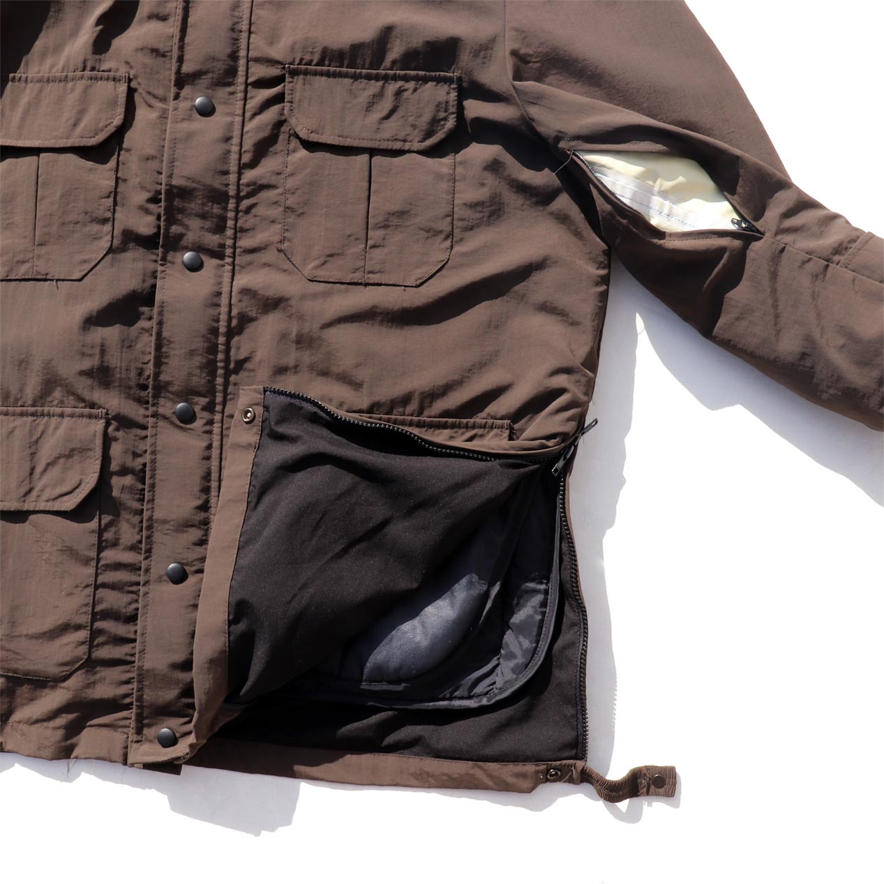 脇下ジップベンチレーション、両裾サイドジップ