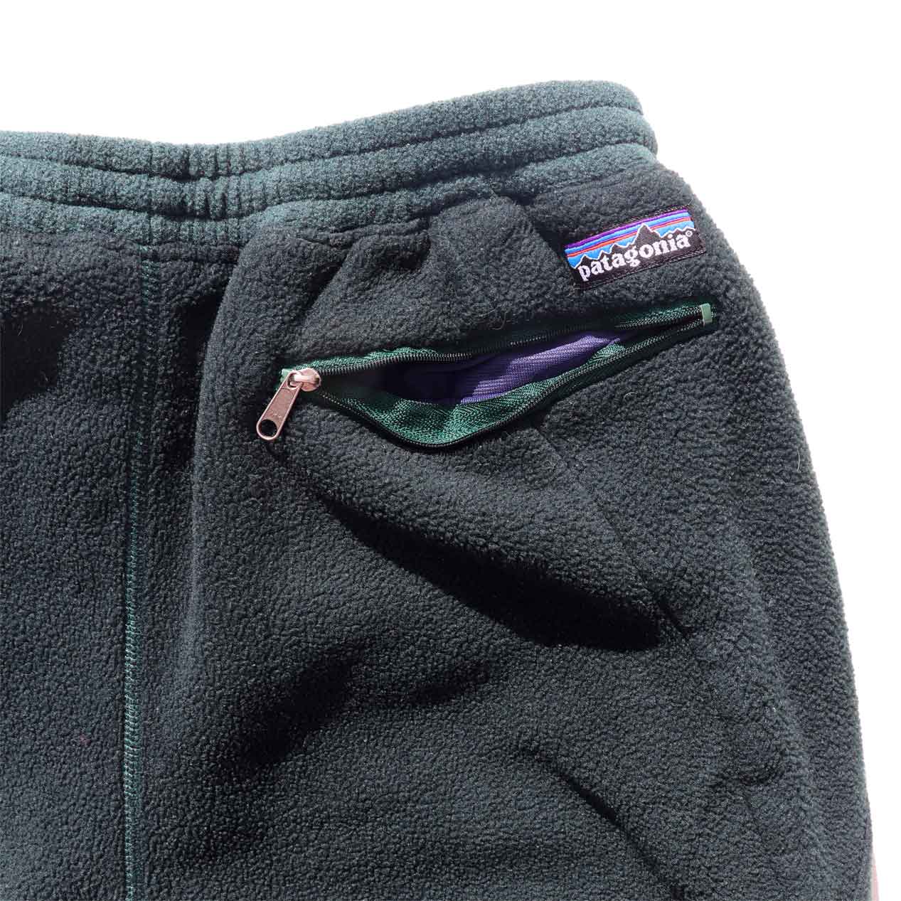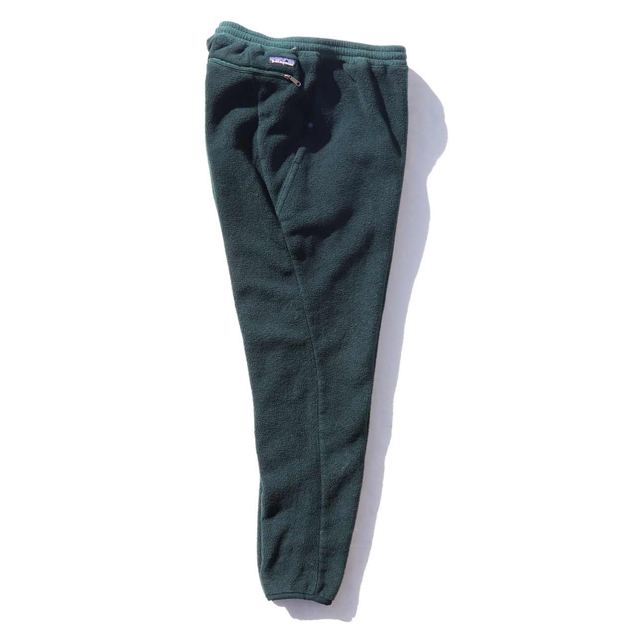 MODEL : PATAGONIA SYNCHILLA Fleece Pants MADE IN : U.S.A. AGE : 90's SIZE : L COLOR : ダークグリーン MATERIAL : --- (おそらくポリエステル 100%) COMMENT : 90年代 パタゴニア