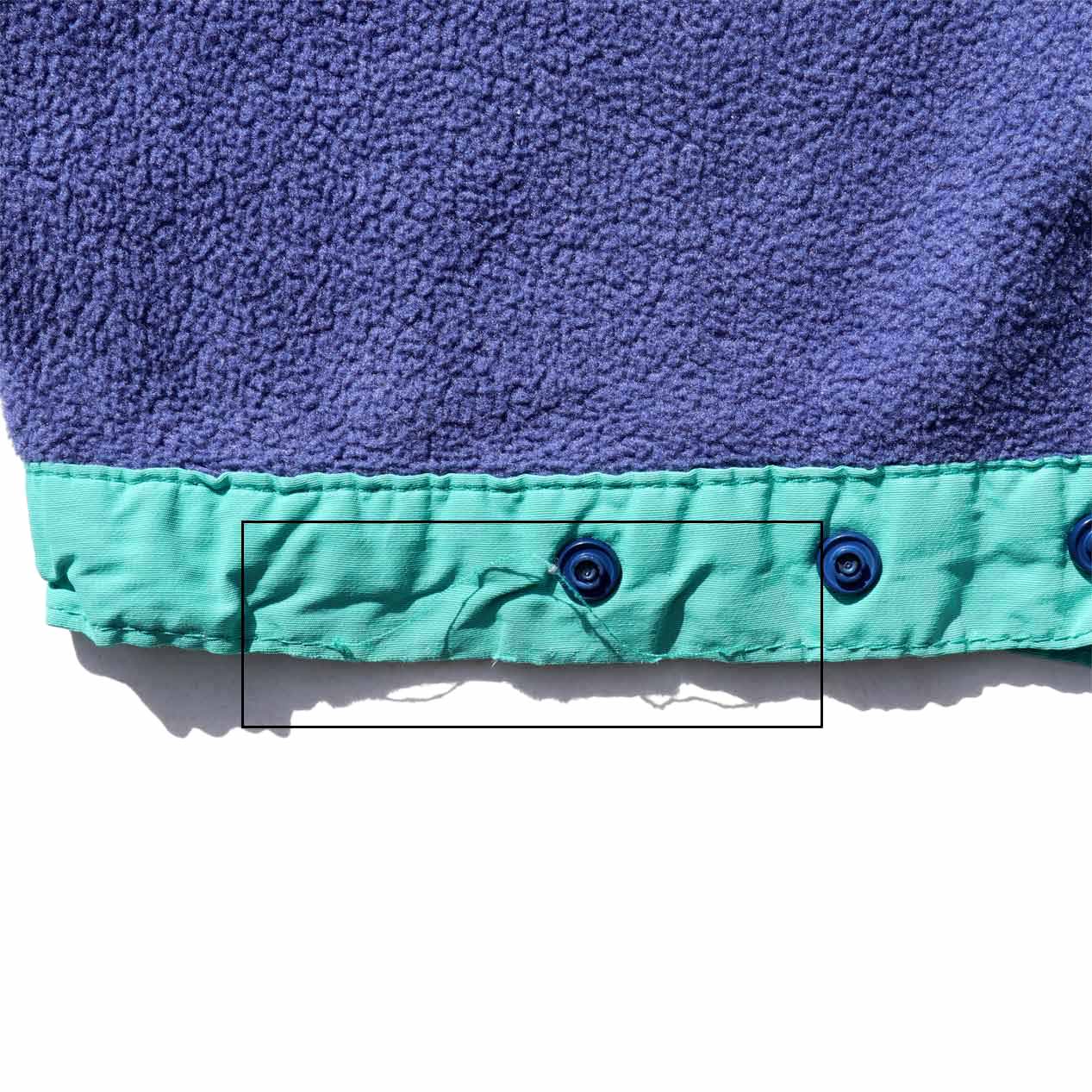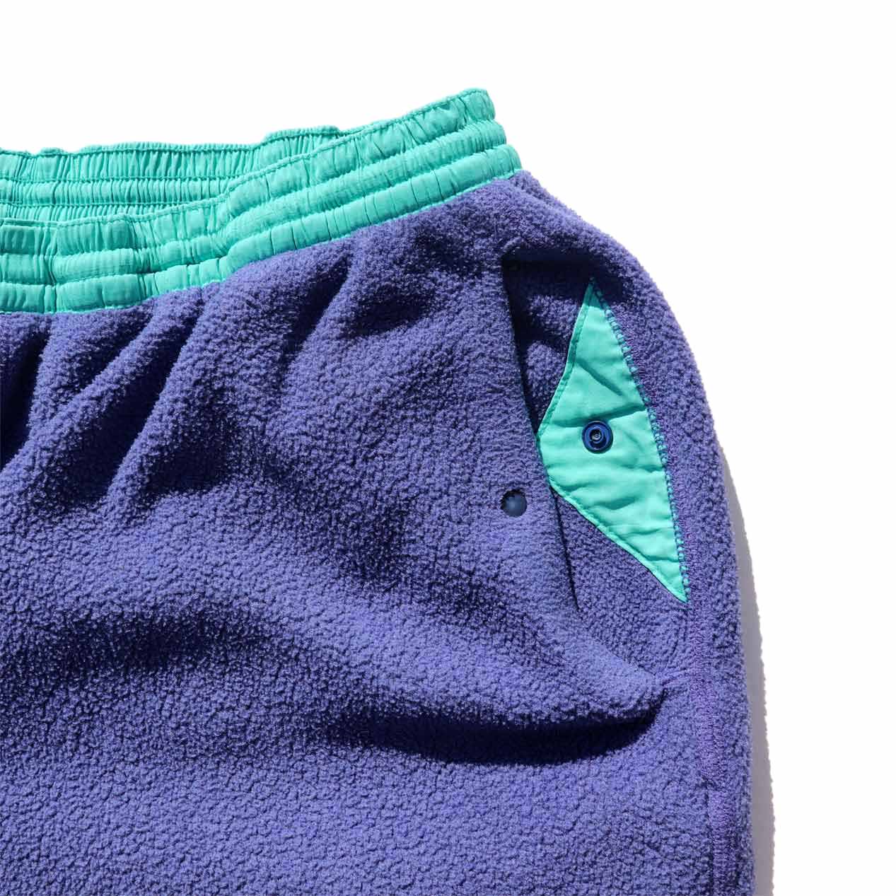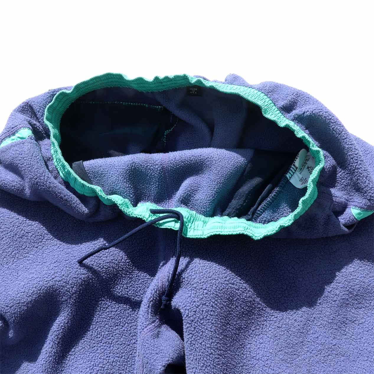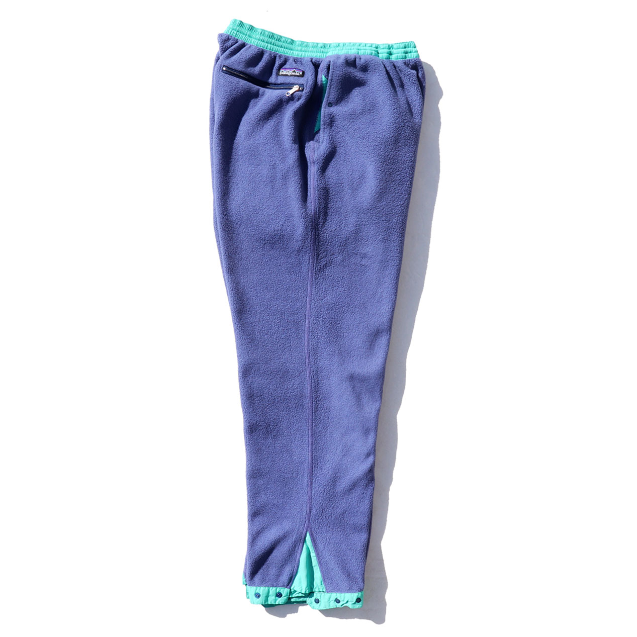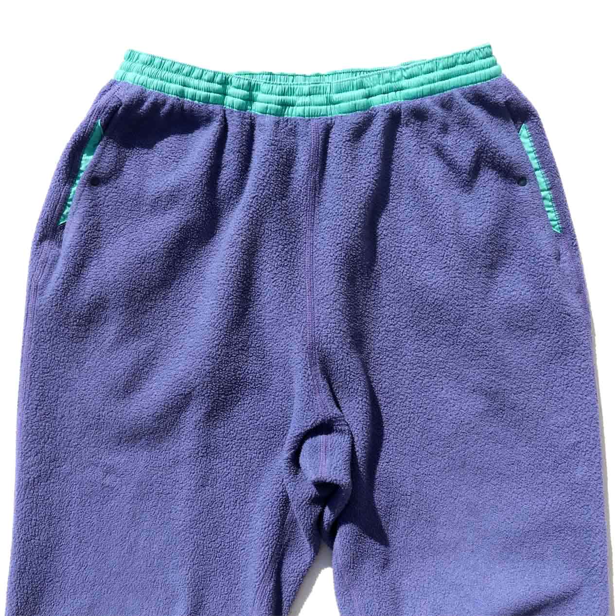 MODEL : PATAGONIA Two-Tone Color Synchilla Fleece Pants MADE IN : U.S.A. AGE : 90's SIZE : L COLOR : グレイッシュブルー/エメラルド MATERIAL : ポリエステル 100% COMMENT : 1990年(S0) パタゴニア