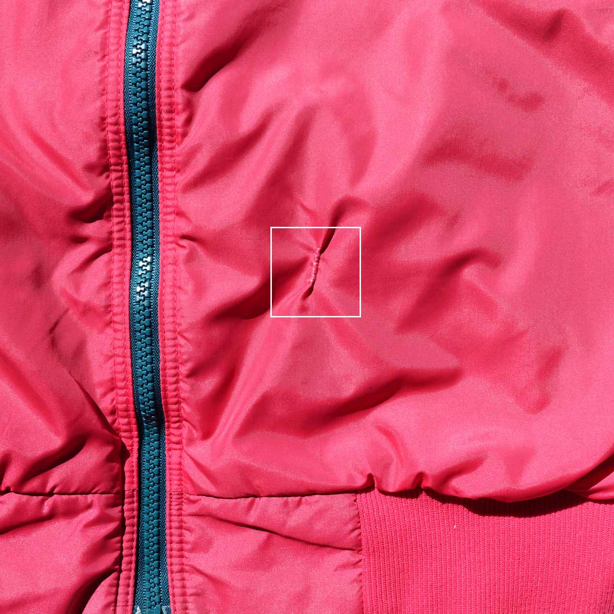 ・フロント : 左腹部付近に破れ手縫いリペア、両ポケット口に薄い汚れ