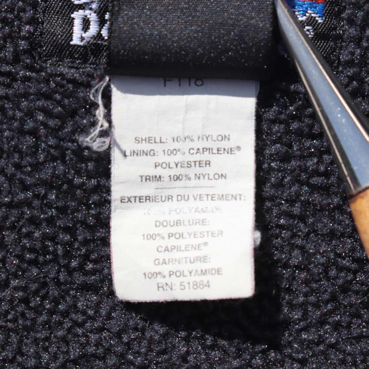 表地ソフトナイロンシェル、裏地キャプリーンフリース