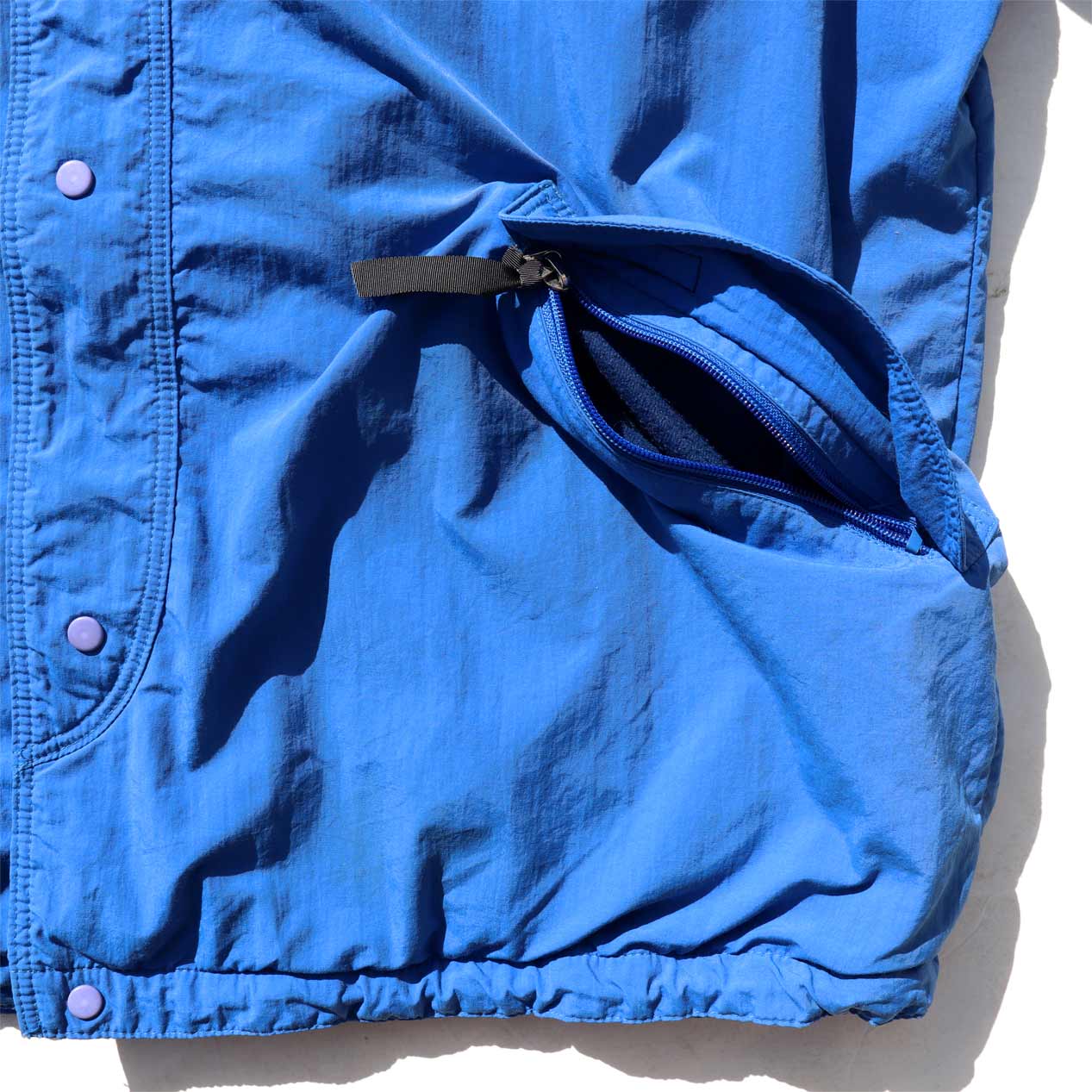 フロントジップ+スナップボタン留め