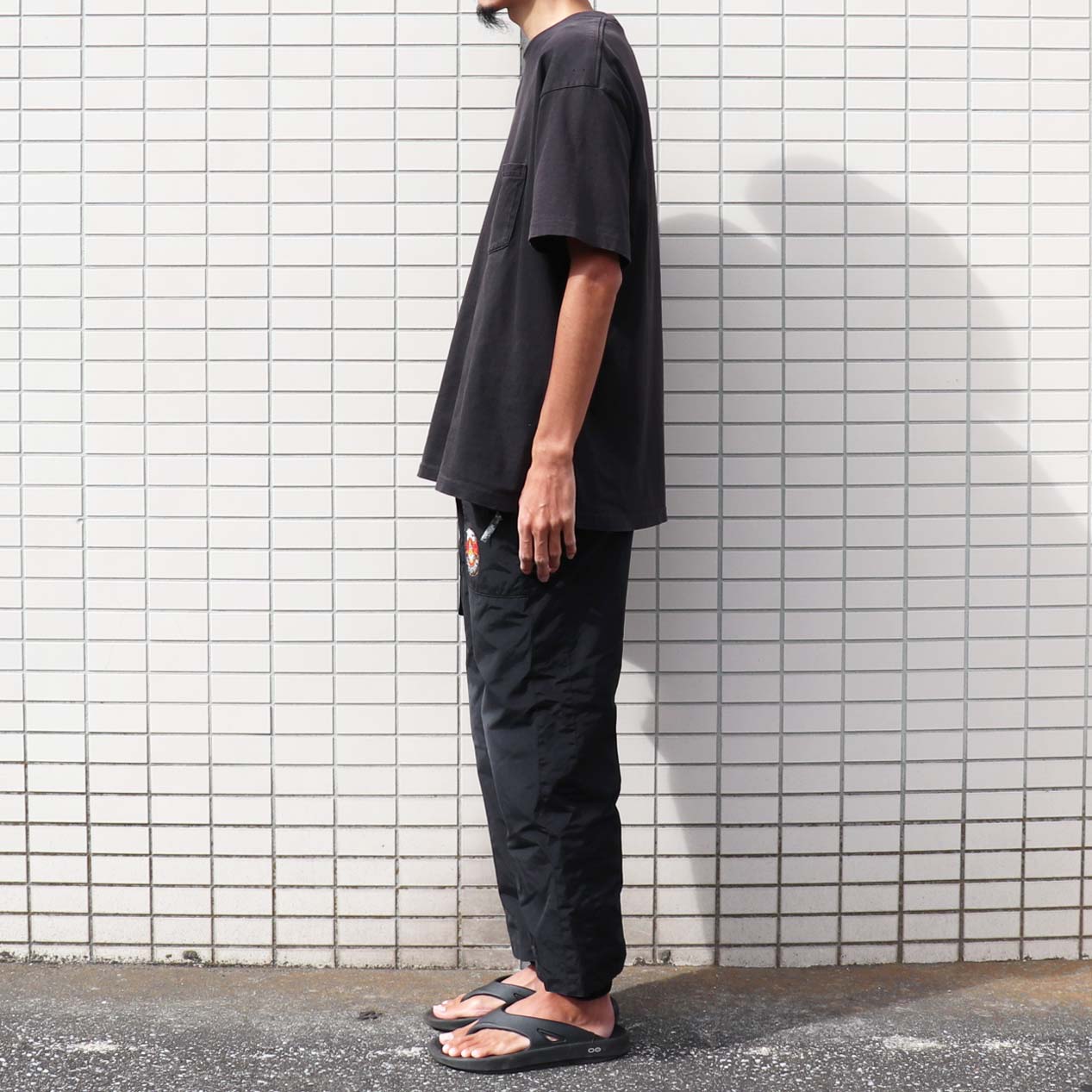 ジップハンドポケット、右足にフラップポケット