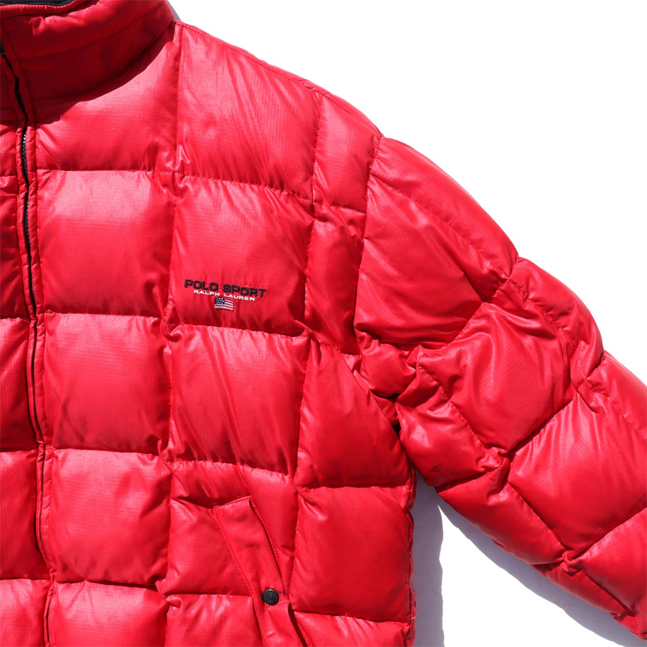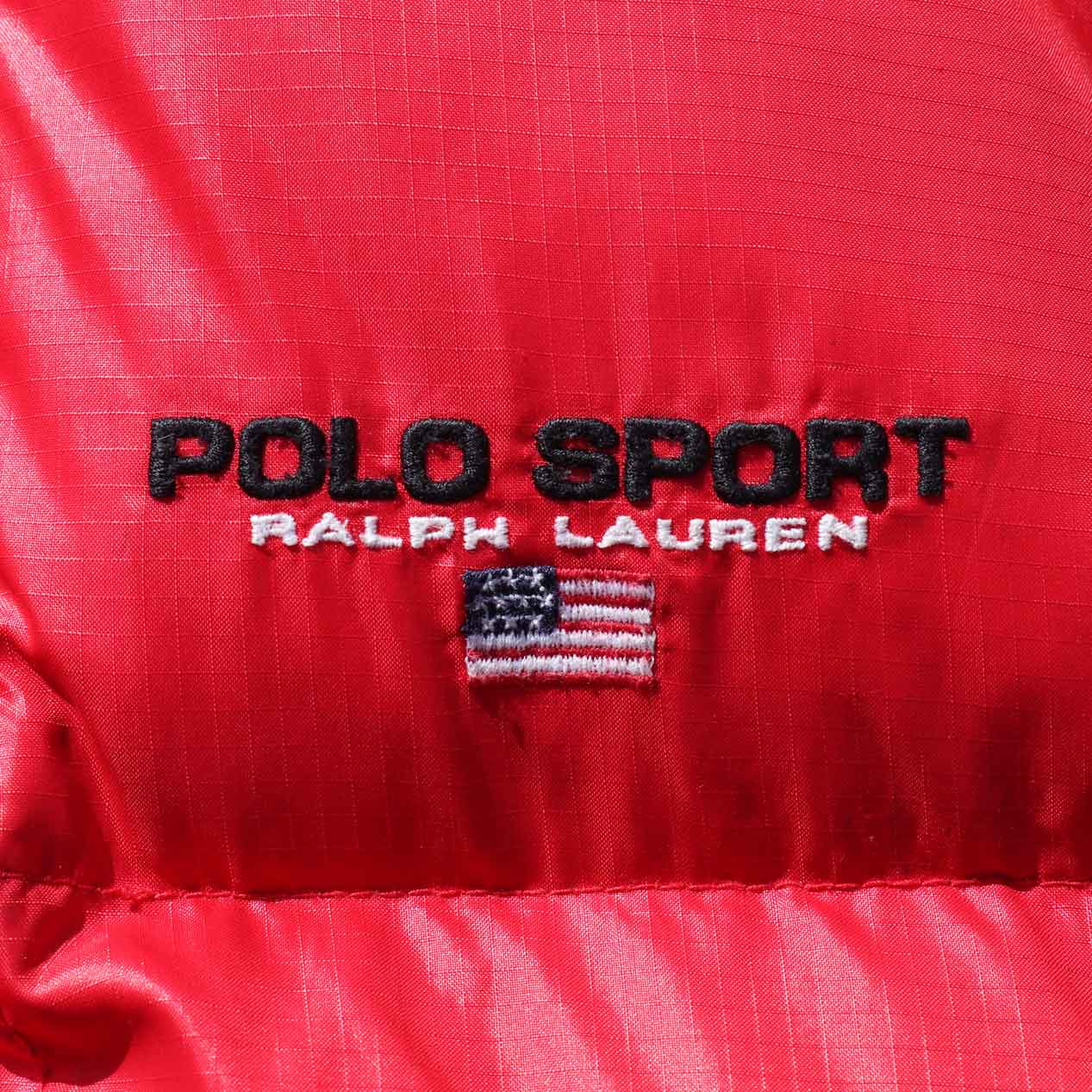 MODEL : POLO RALPH LAUREN POLO SPORTS Nylon Down Jacket MADE IN : Thailand AGE : 90's SIZE : XL COLOR : レッド MATERIAL : 表地・裏地 : ナイロン 100% / フィル : ダウン 80% フェザー 20% COMMENT : 90年代 ポロラルフローレン