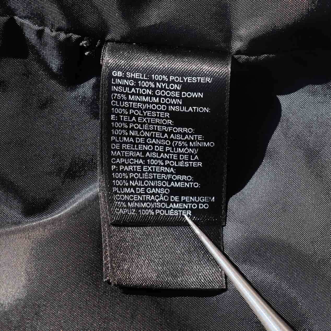 MATERIAL : 表地 : ポリエステル 100% / 裏地 : ナイロン 100% / フィル : グースダウン