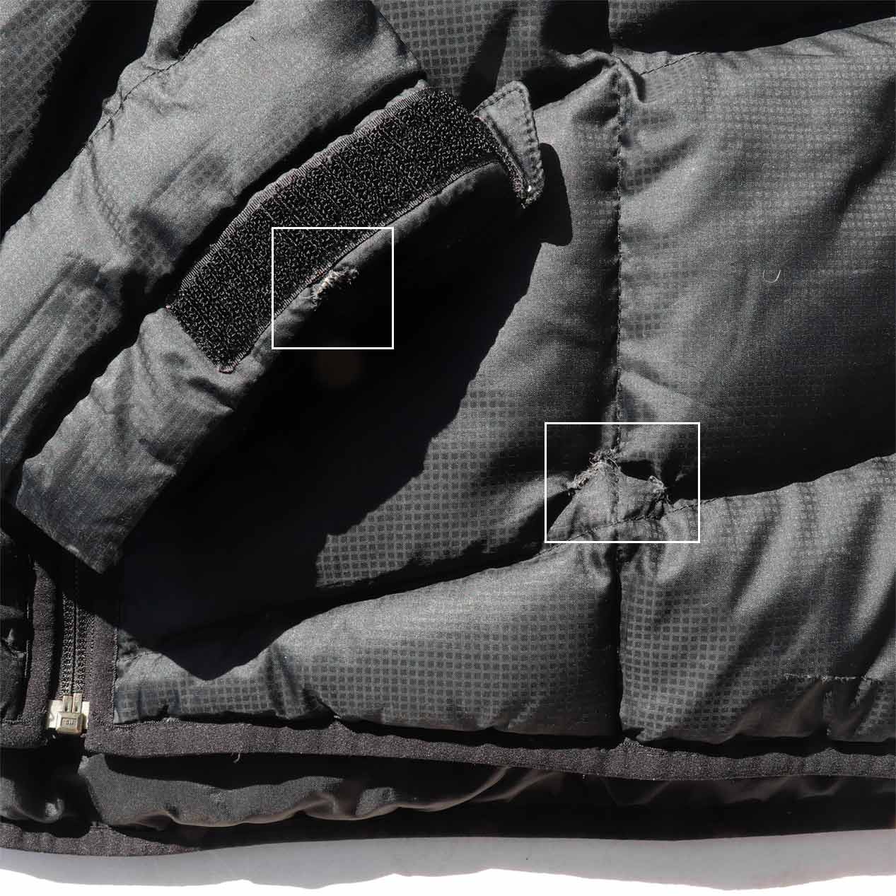 ・フロント、袖 : フロント左裾、右袖先に生地破れ手縫いリペア