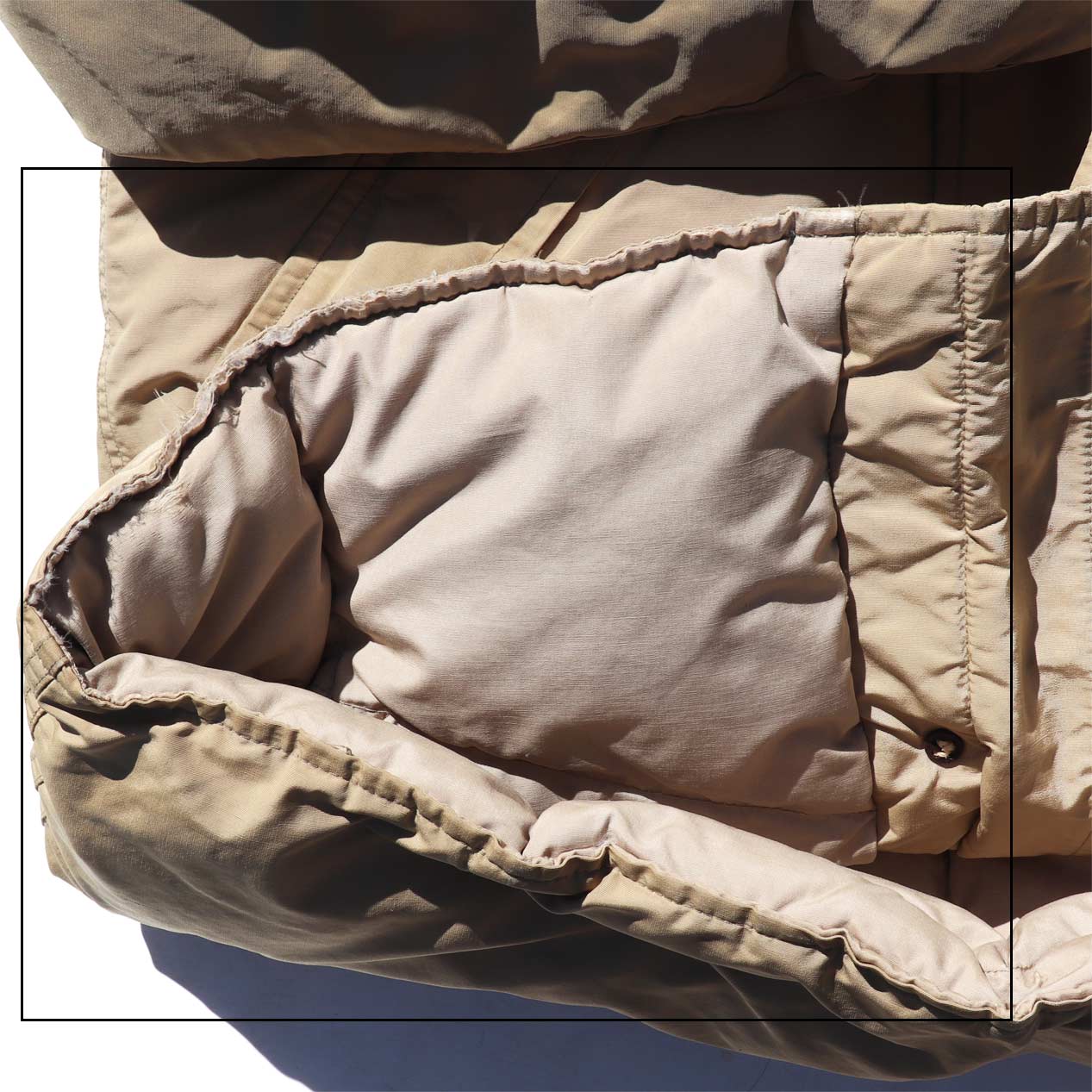 MATERIAL : --- (おそらく表地 : ナイロンコットン / フィル : グースダウン)