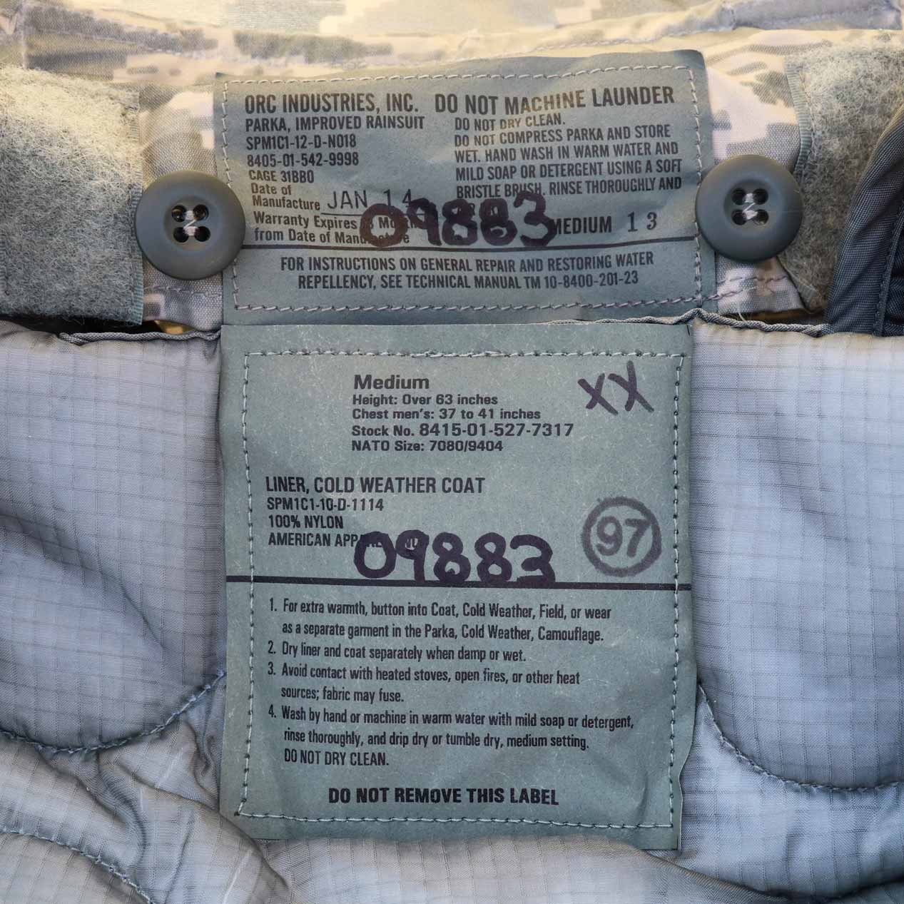 MODEL : ORC INDUSTRIES Improved Rainsuit With Liner MADE IN : --- AGE : 00's~ SIZE : M COLOR : セージグリーン系 MATERIAL : --- (おそらくナイロン 100%) COMMENT : 2014年 OCRインダストリーズ U.S. AIR FORCEレインスーツ