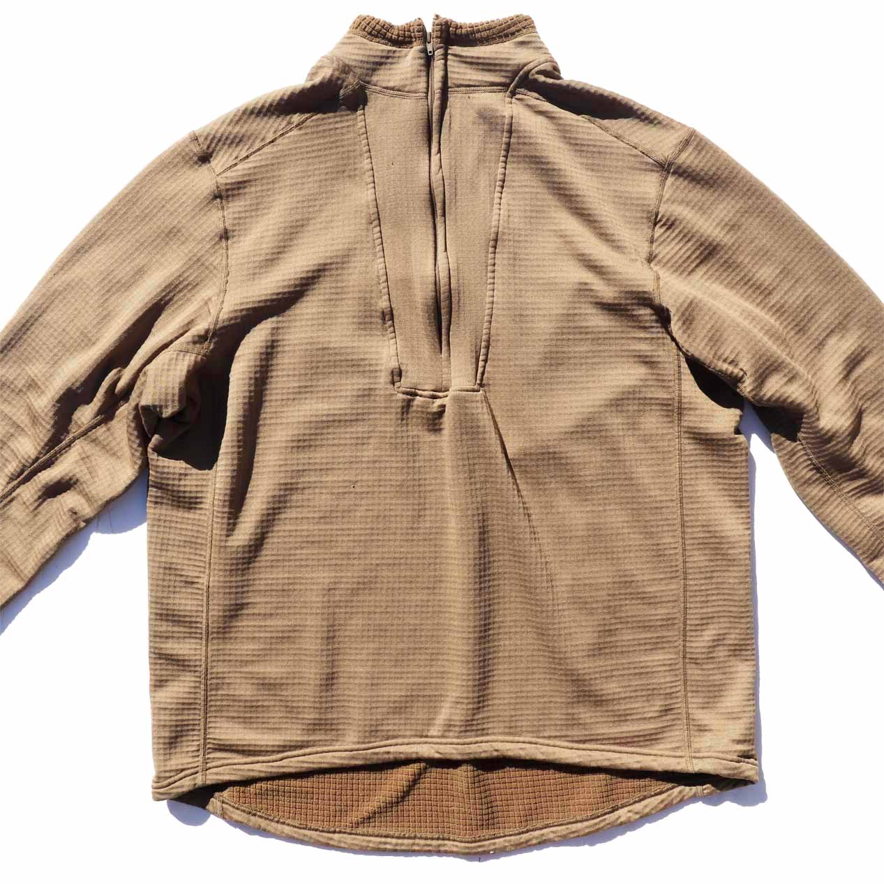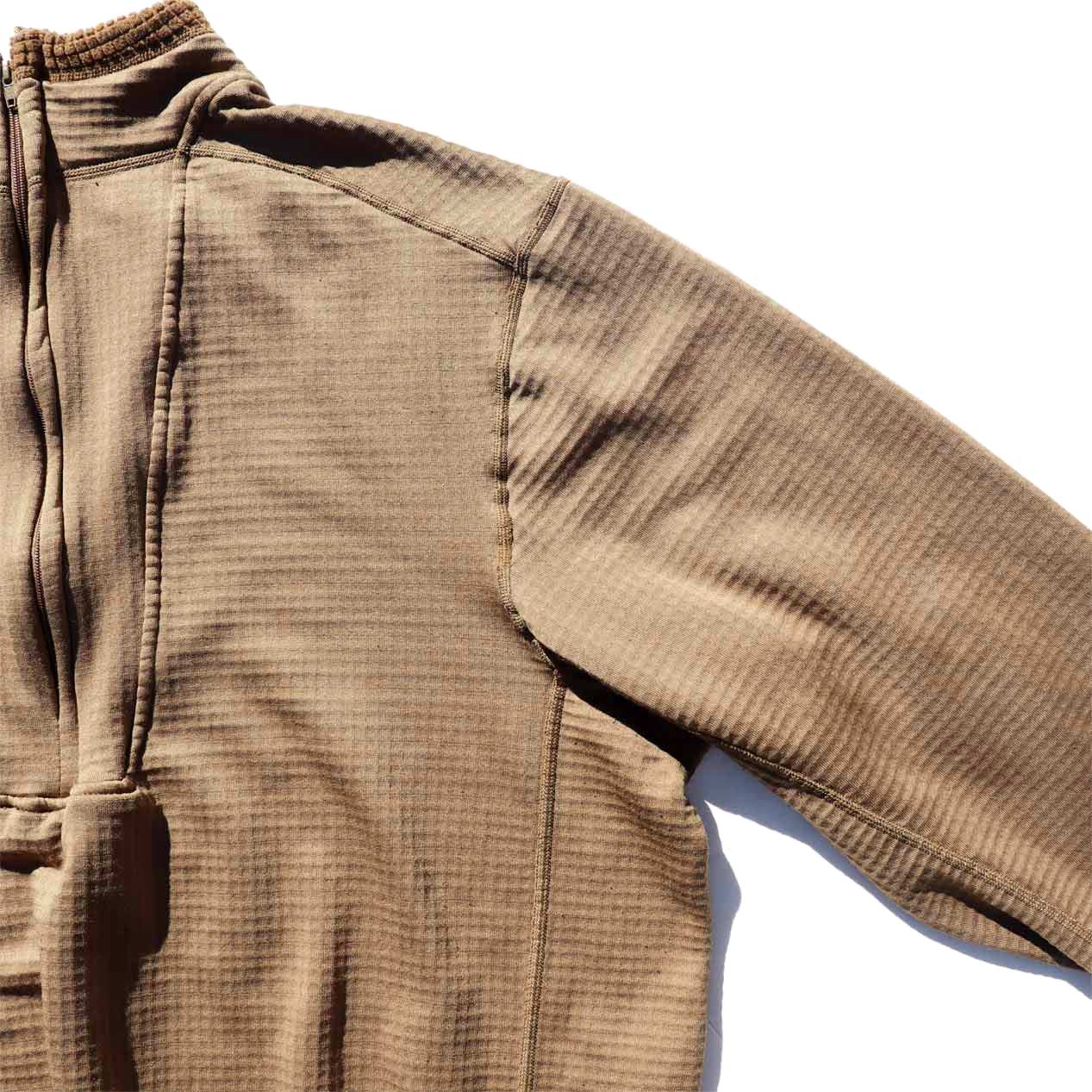 MODEL : ORC INDUSTRIES PCU LEVEL 2 Long Sleeve Top MADE IN : U.S.A. AGE : 00's~ SIZE : XL COLOR : コヨーテ MATERIAL : ポリエステル 97% シルバーコーテッドヤーン 3% COMMENT : 00年代~ ORCインダストリーズ グリッドフリースシャツ