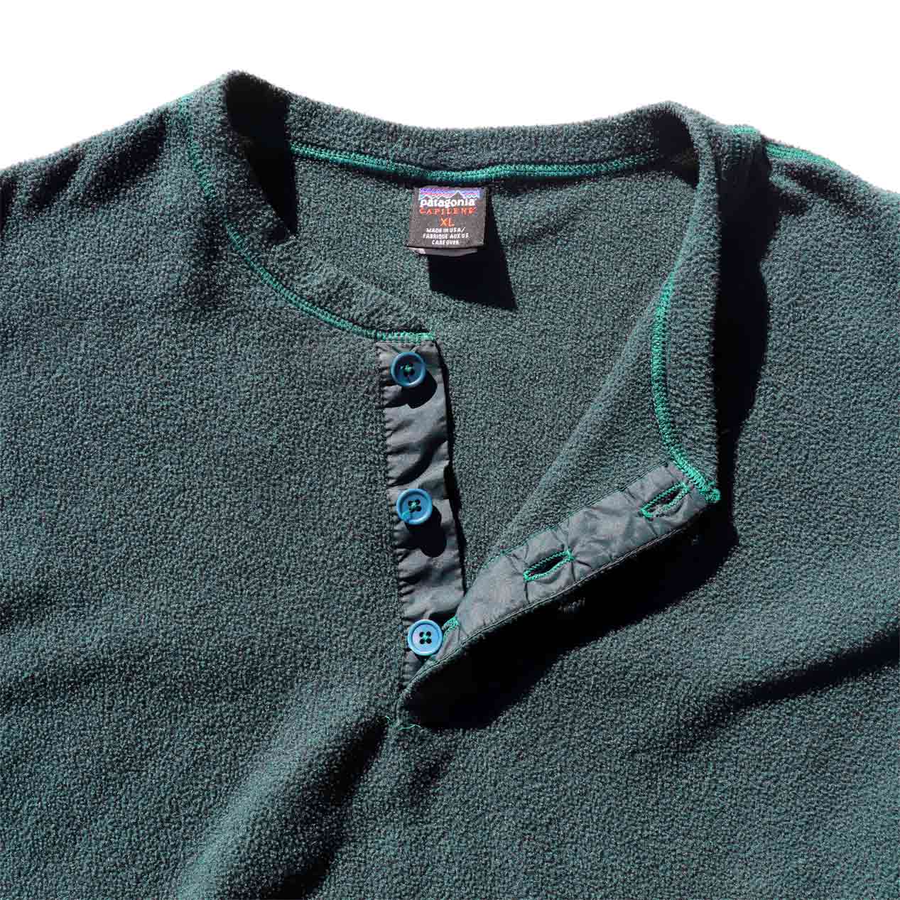 MODEL : PATAGONIA Capilene Fleece Henry Neck L/S Shirt MADE IN : U.S.A. AGE : 90's SIZE : XL COLOR : グリーン MATERIAL : ポリエステル 100% COMMENT : 90年代 パタゴニア