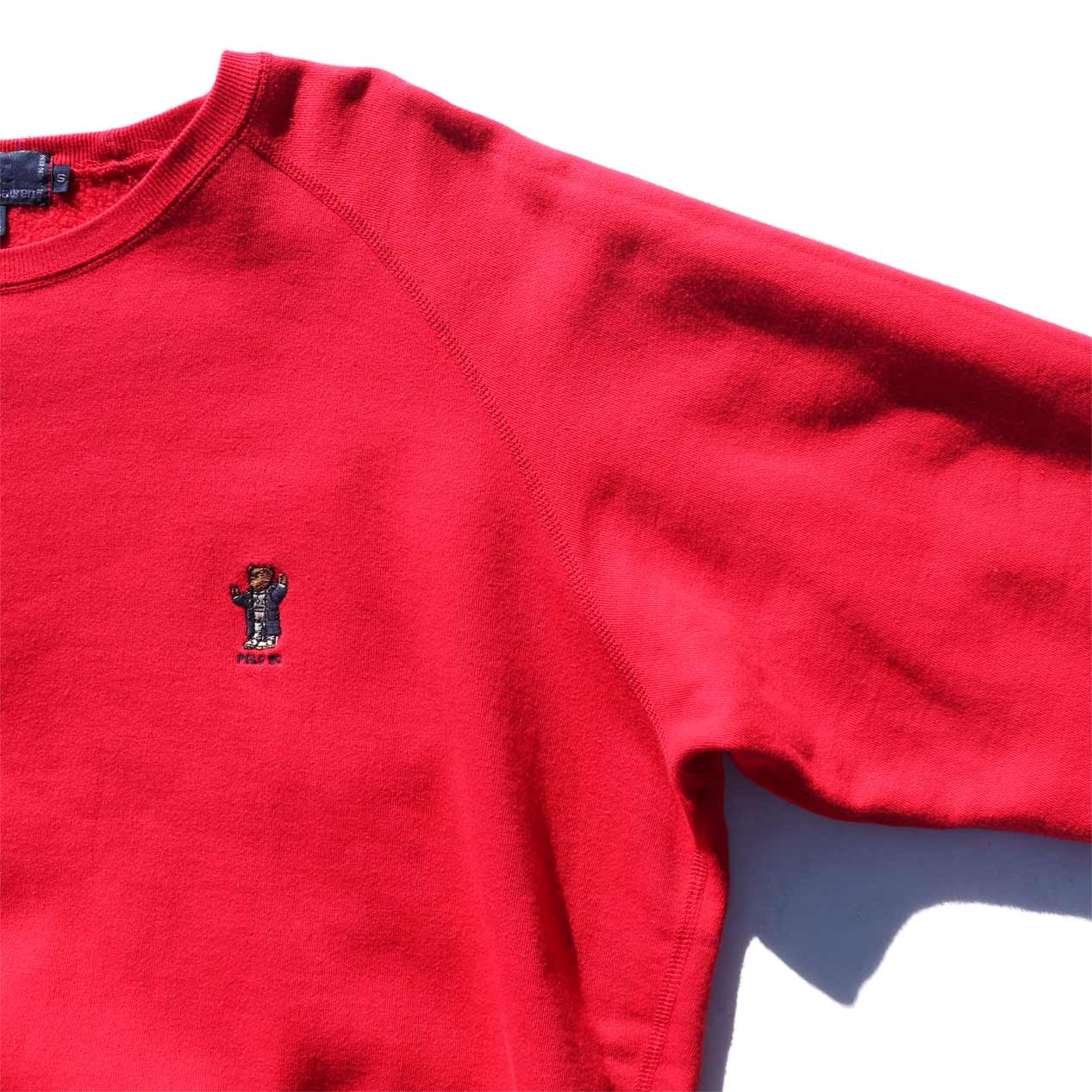 MODEL : POLO RALPH LAUREN “POLO 92” Polo Bear Embroidered Sweatshirt MADE IN : Hong Kong AGE : 90's SIZE : S COLOR : レッド MATERIAL : コットン 93% アクリル 7% COMMENT : 90年代 ポロラルフローレン