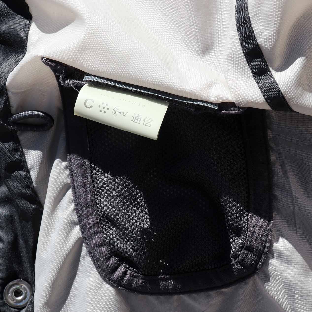 フロント6ポケット(下段ポケットのハンドウォーマー含む)、左腕にメッシュポケット、内ポケットx2