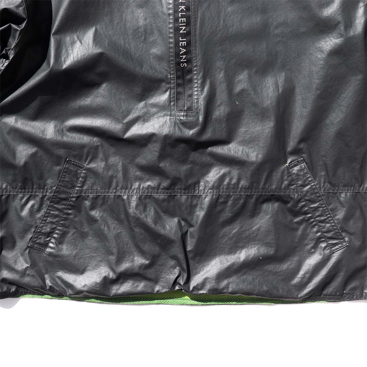 MODEL : CALVIN KLEIN JEANS Rubber Coated Pullover Jacket MADE IN : Hong Kong AGE : 90's SIZE : L COLOR : ブラック MATERIAL : 表地 : コットン 100% / 裏地 : ナイロン 100% COMMENT : 90年代 カルバンクラインジーンズ