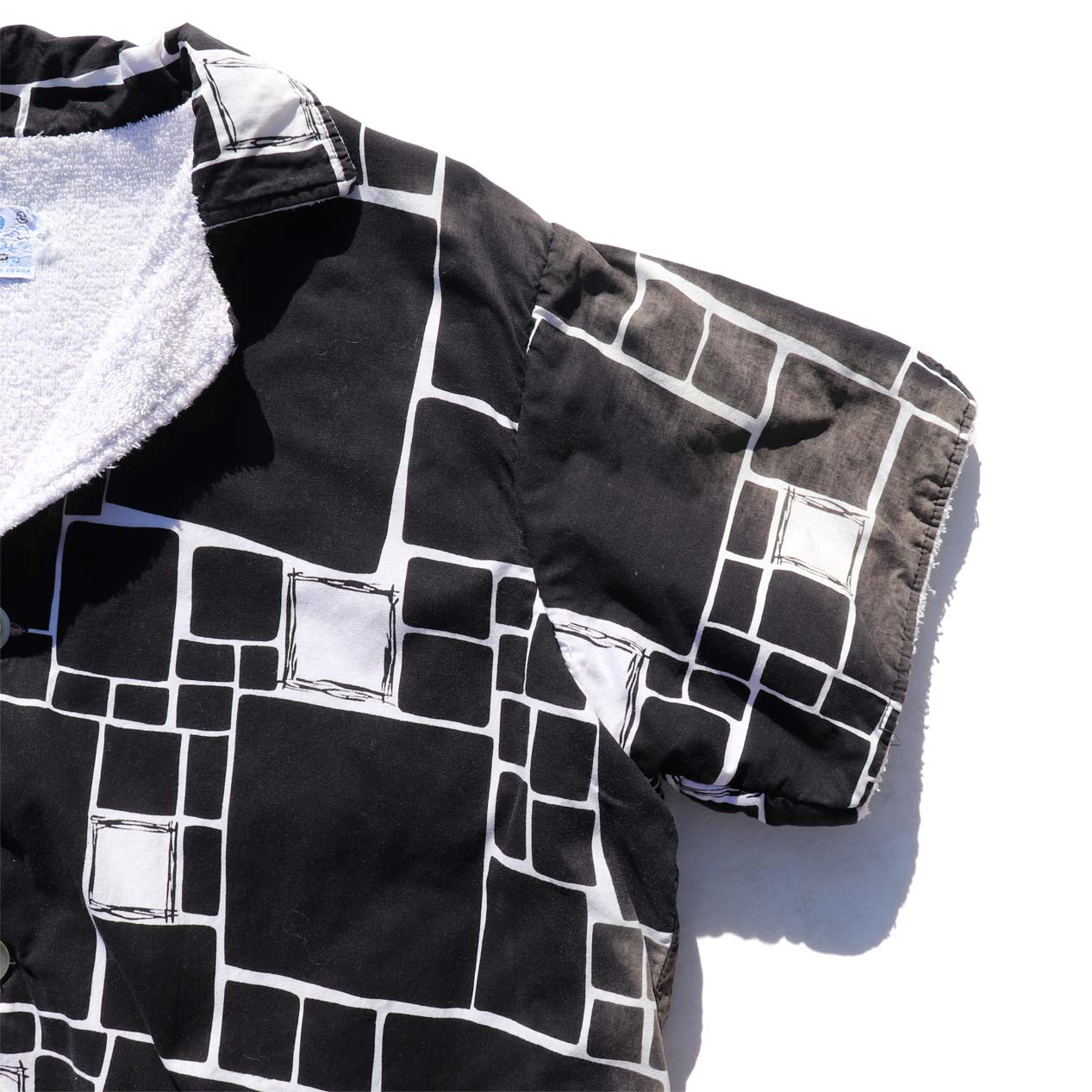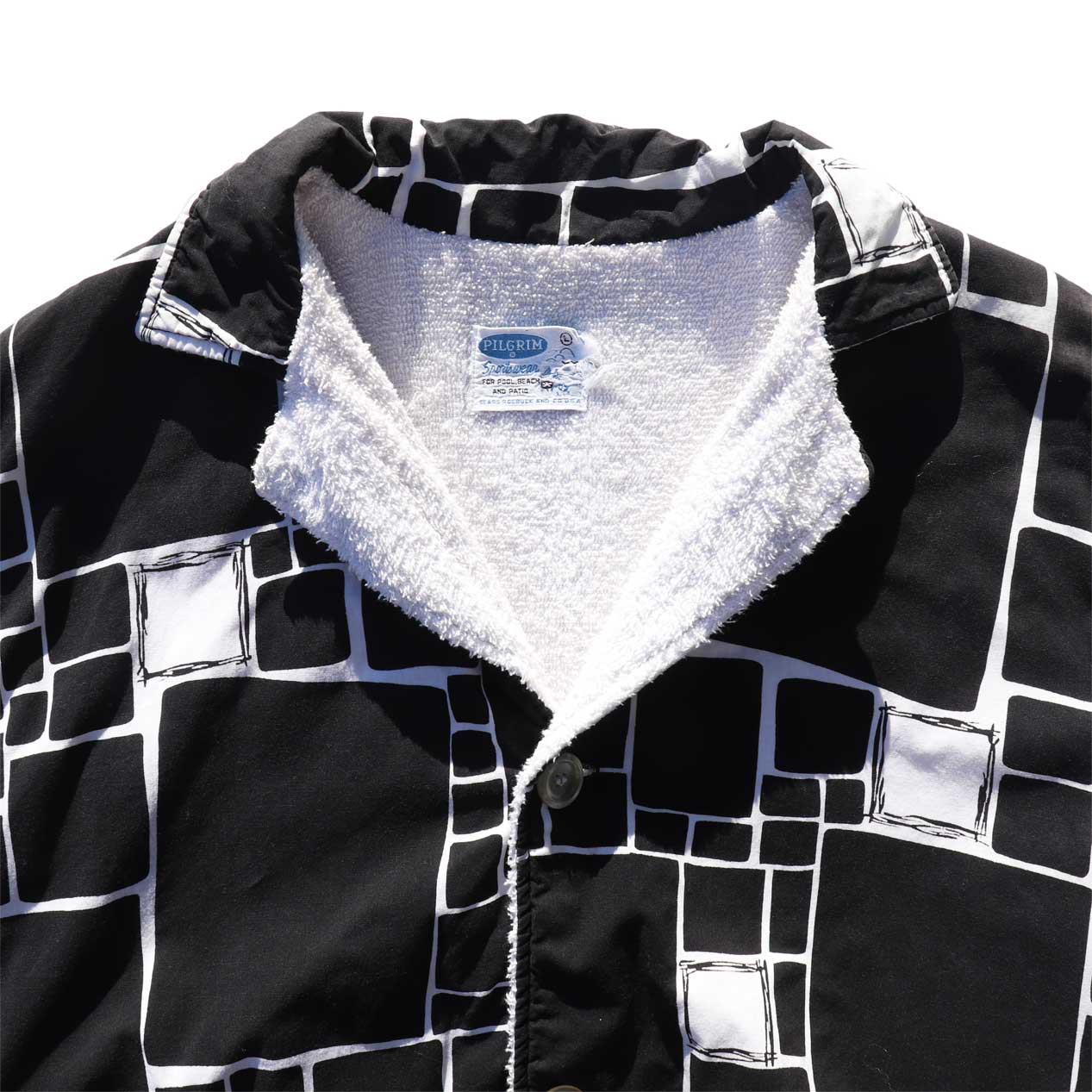 MODEL : PILGRIM “BLACK” Atomic Patterned Beach Shirt MADE IN : --- AGE : 60's SIZE : L COLOR : ブラック/ホワイト MATERIAL : --- (おそらくコットン 100%) COMMENT : 60年代 ピルグリム