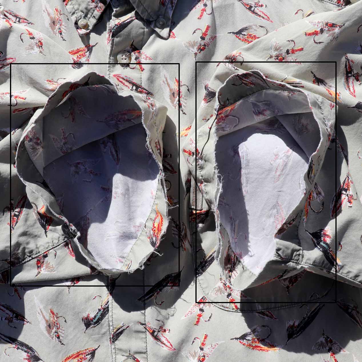 ・フロント、袖: 襟腰・ポケット口・両袖口にスレ破れ