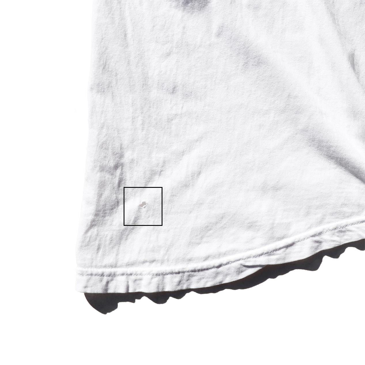 ・フロント: 府左腹部付近に薄い汚れ、左裾に穴