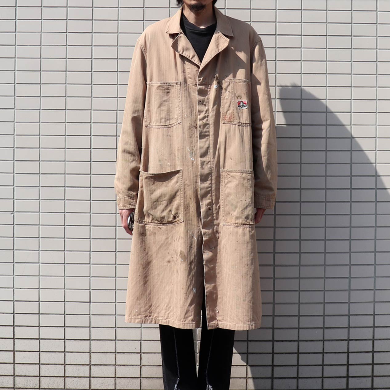 MODEL: BEN DAVIS Herringbone Twill Painted Shop Coat
