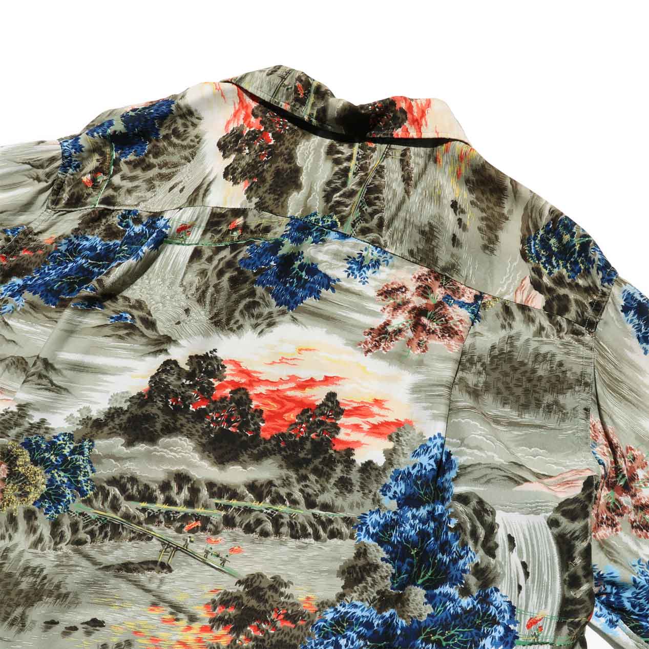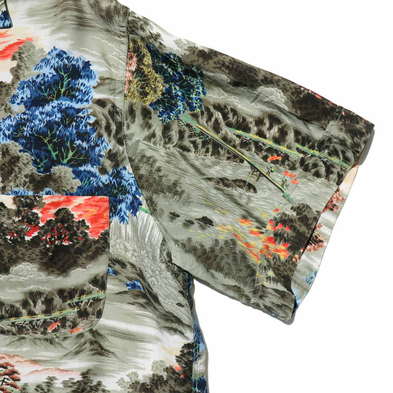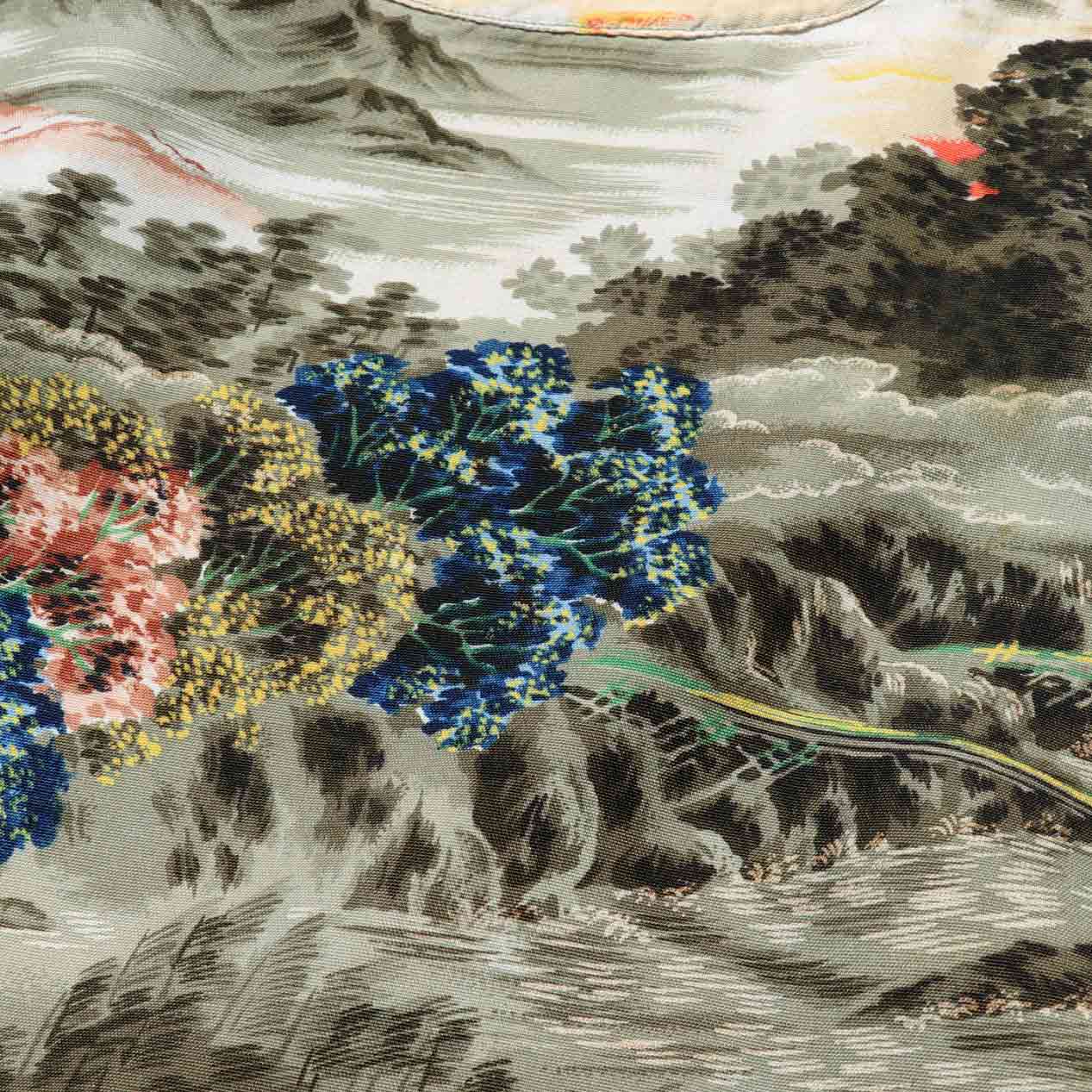 渓谷や松モチーフのオリエンタルなオールオーバーパターンでまとめられています。