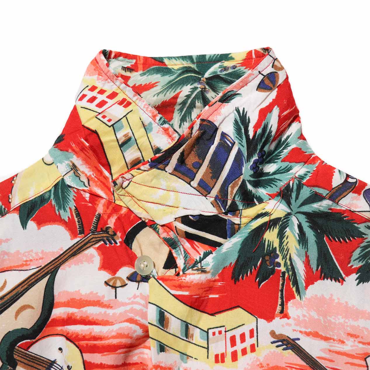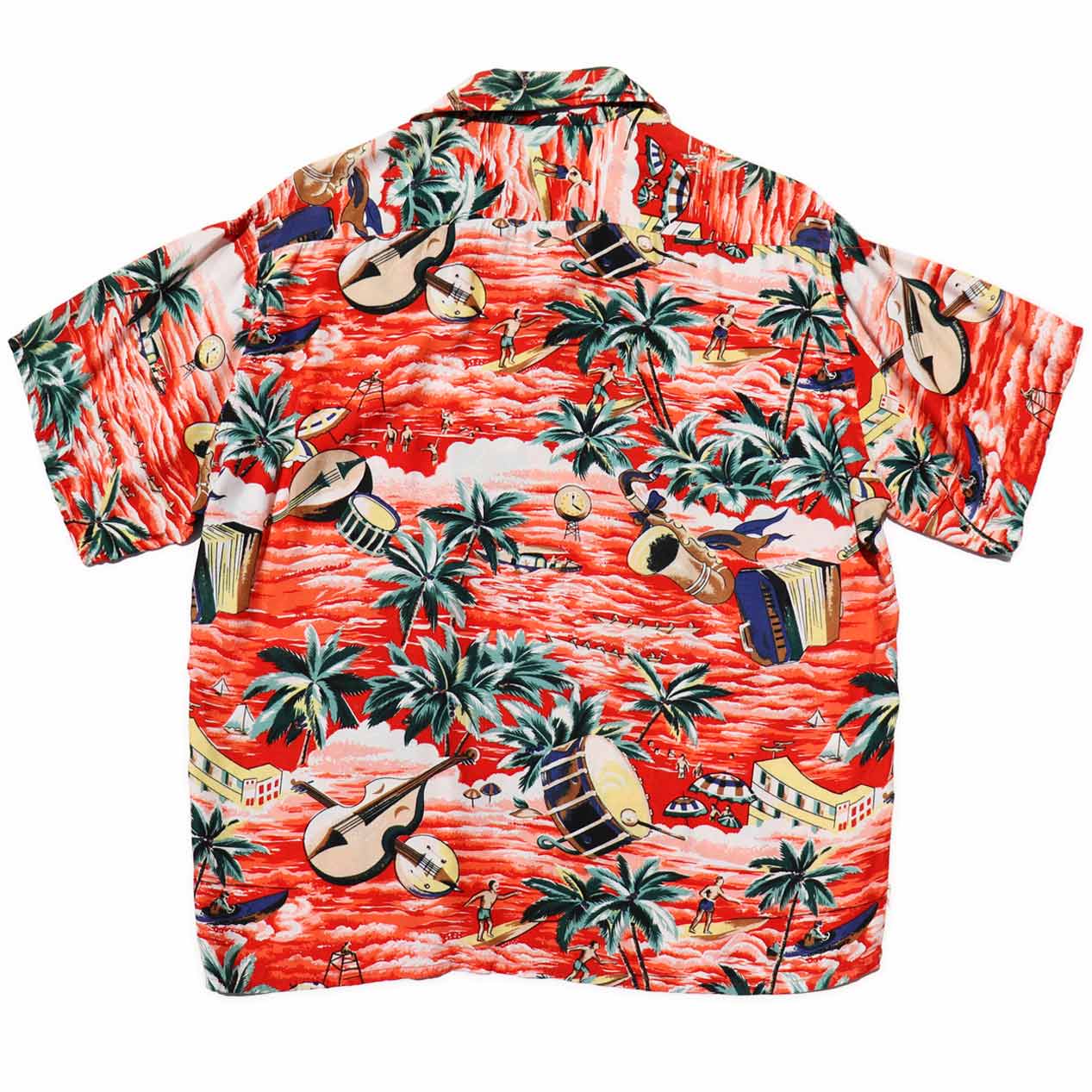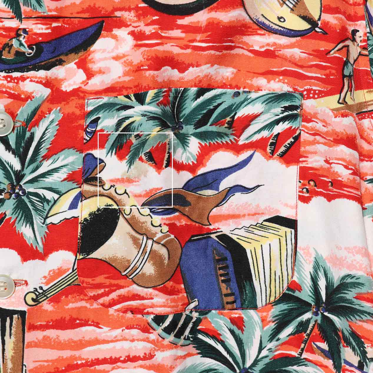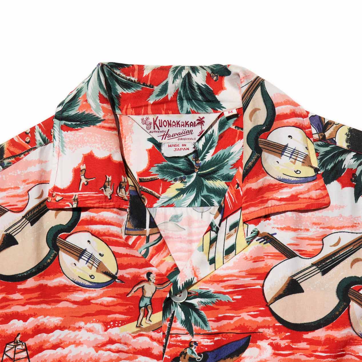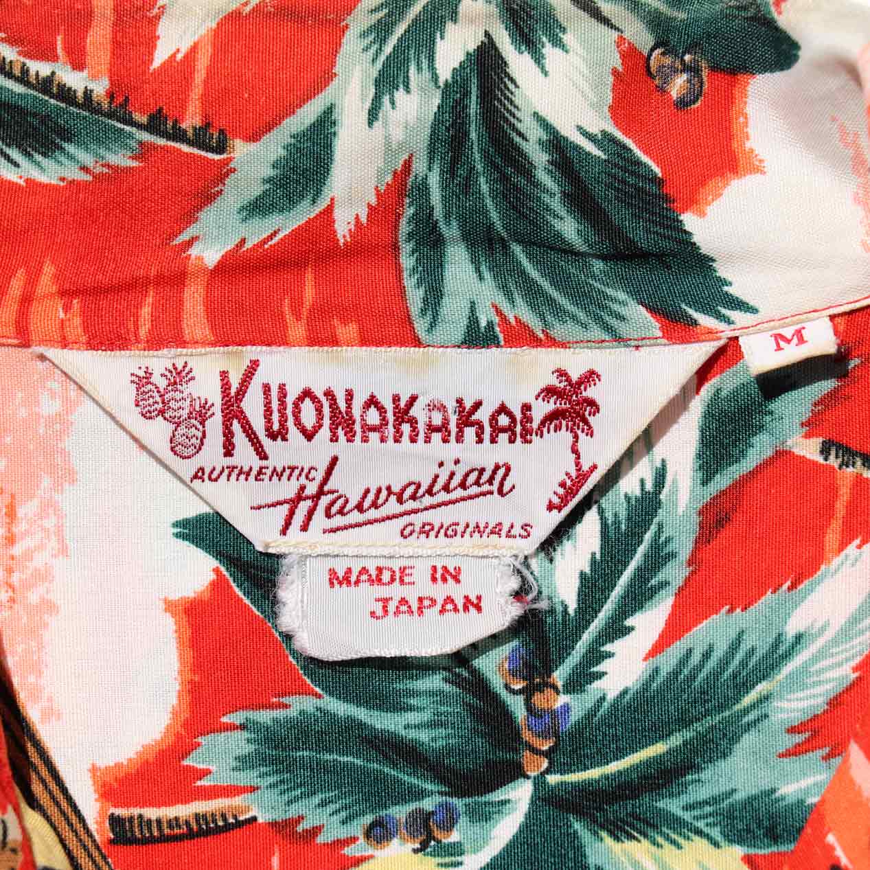 MODEL : KUONAKAKAI ハワイアンシャツ MANUFACTURE : Made In Japan AGE : 50's SIZE : M COLOR : レッド系 MATERIAL : --- (おそらくレーヨン 100%) COMMENT : 50年代、クオナカカイのハワイアンシャツです。