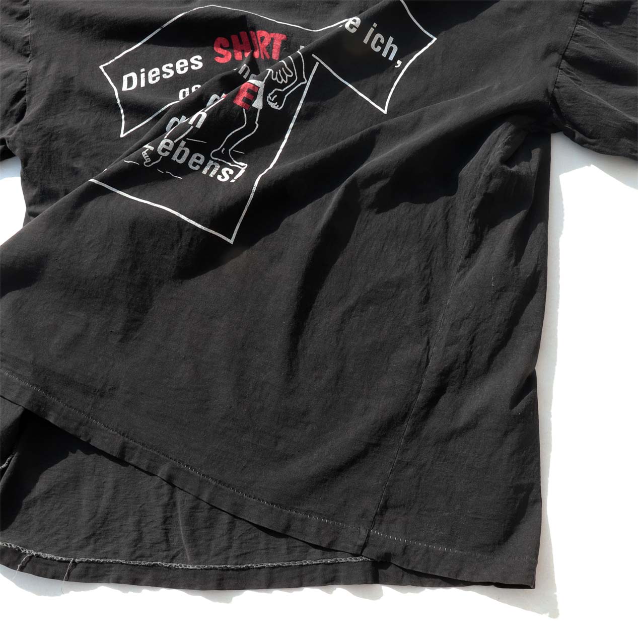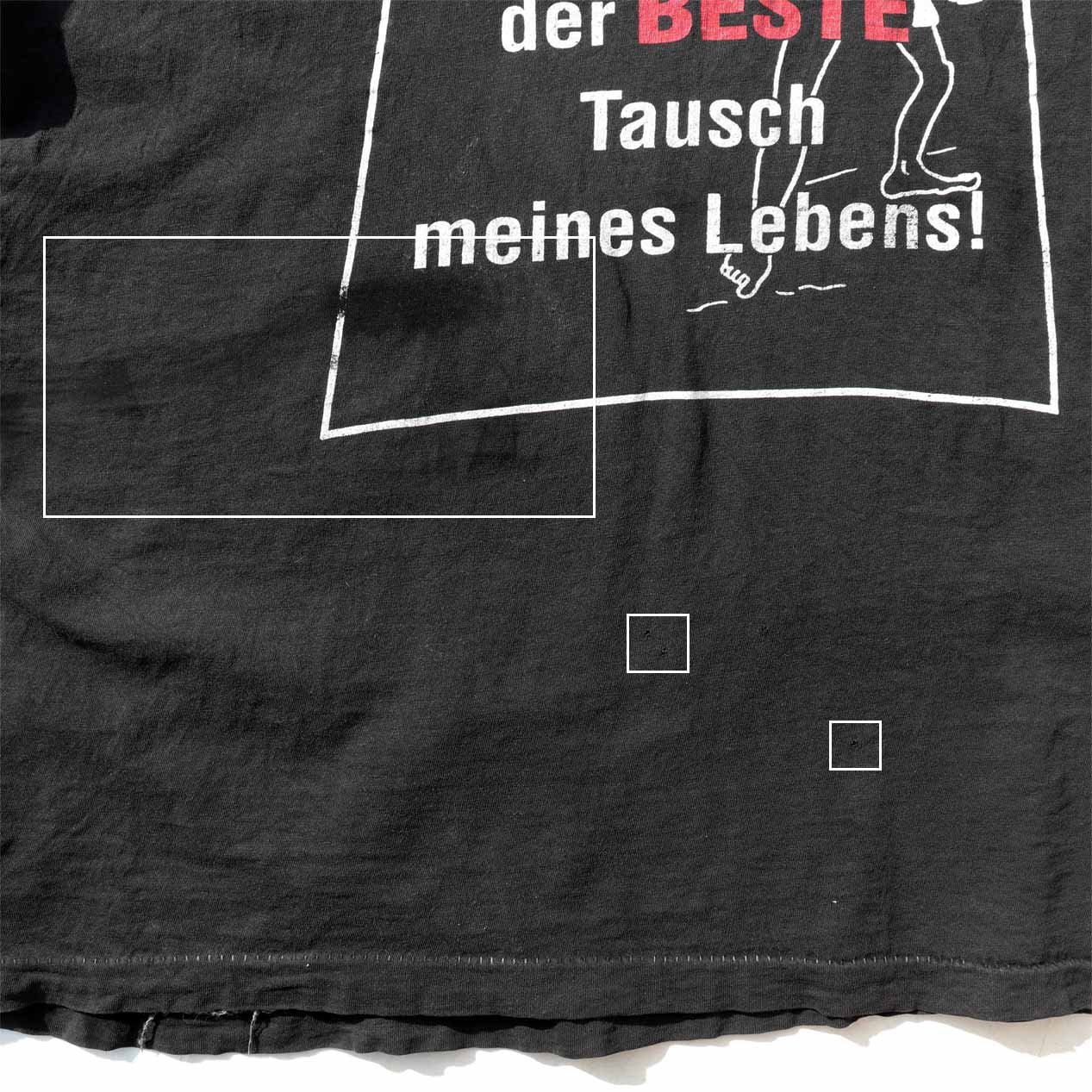 ・フロント: 腹部に油のような染み汚れ、裾付近に小穴