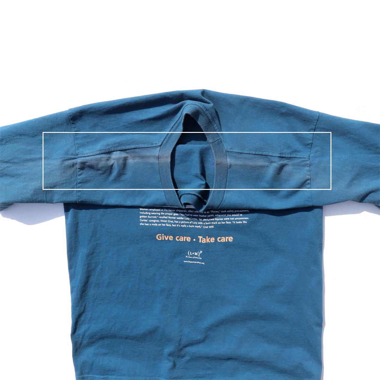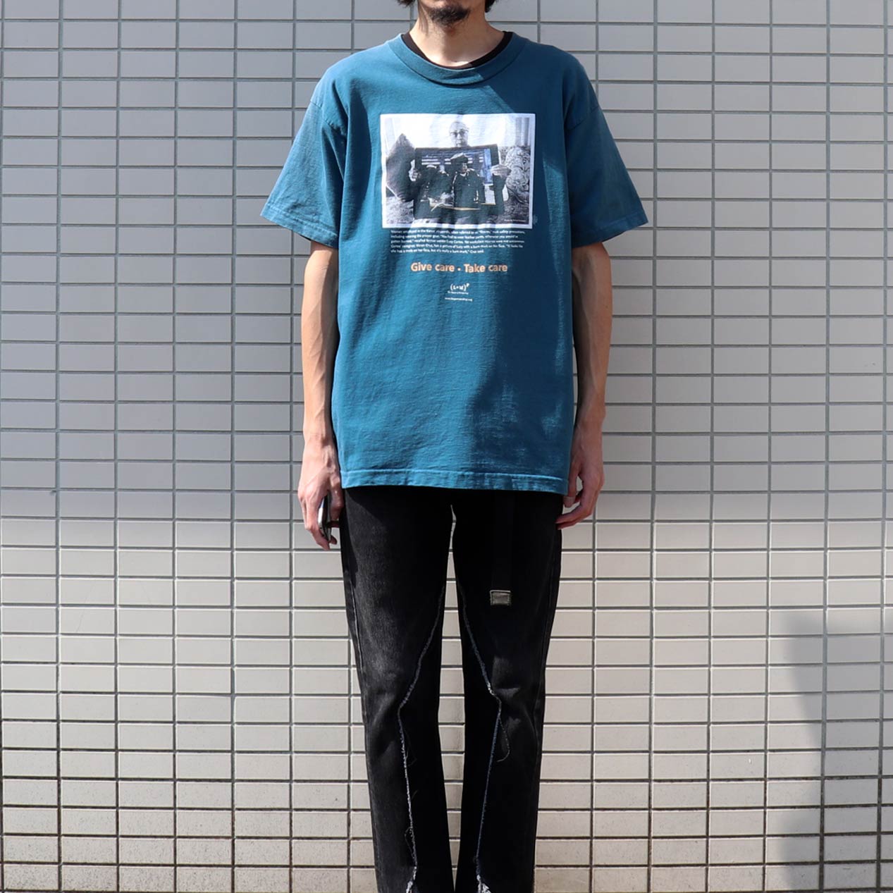MODEL: GIVE CARE・TAKE CARE / ROBERT GUMPERT T-Shirt MADE IN: U.S.A. AGE: 00's SIZE: L COLOR: ターコイズ MATERIAL: コットン 100% COMMENT: フロントにラバープリント