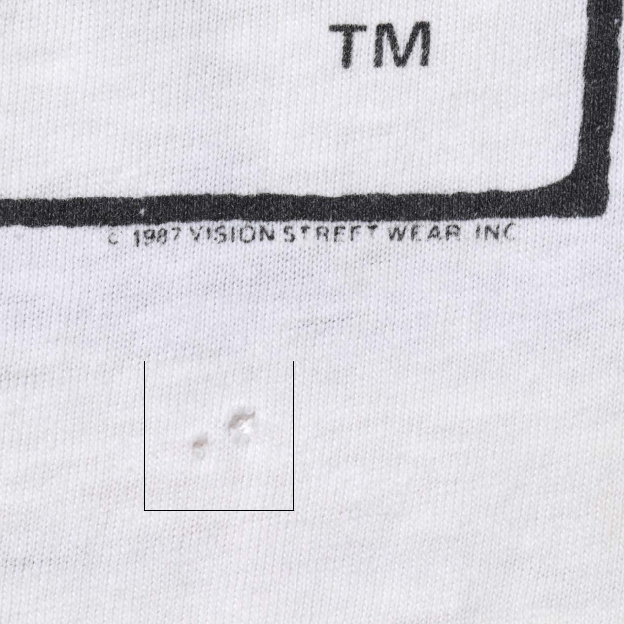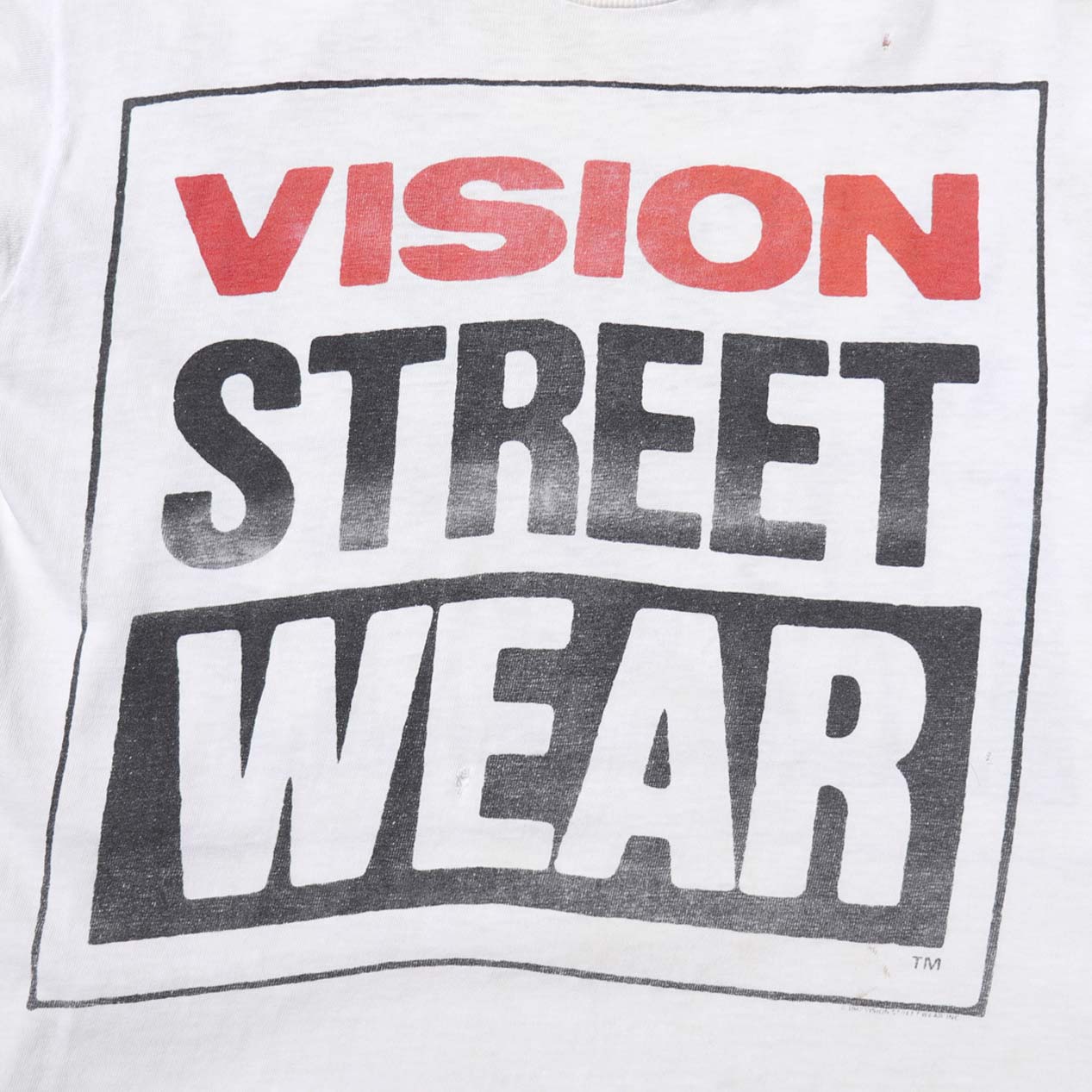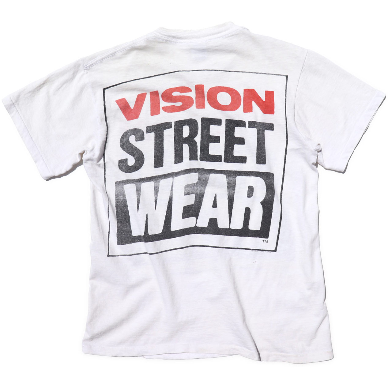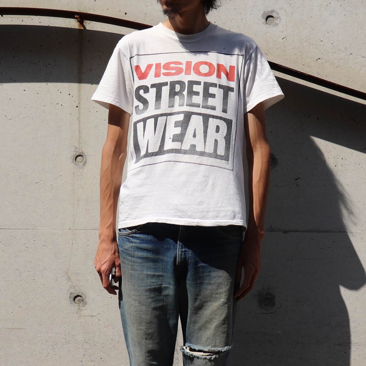 MODEL : VISION STREET WEAR クラシックロゴ プリントTシャツ MANUFACTURE : Made In U.S.A. AGE : 80's SIZE : M COLOR : ホワイト MATERIAL : コットン 100% COMMENT : 80年代、VISIONのロゴプリントTシャツです。