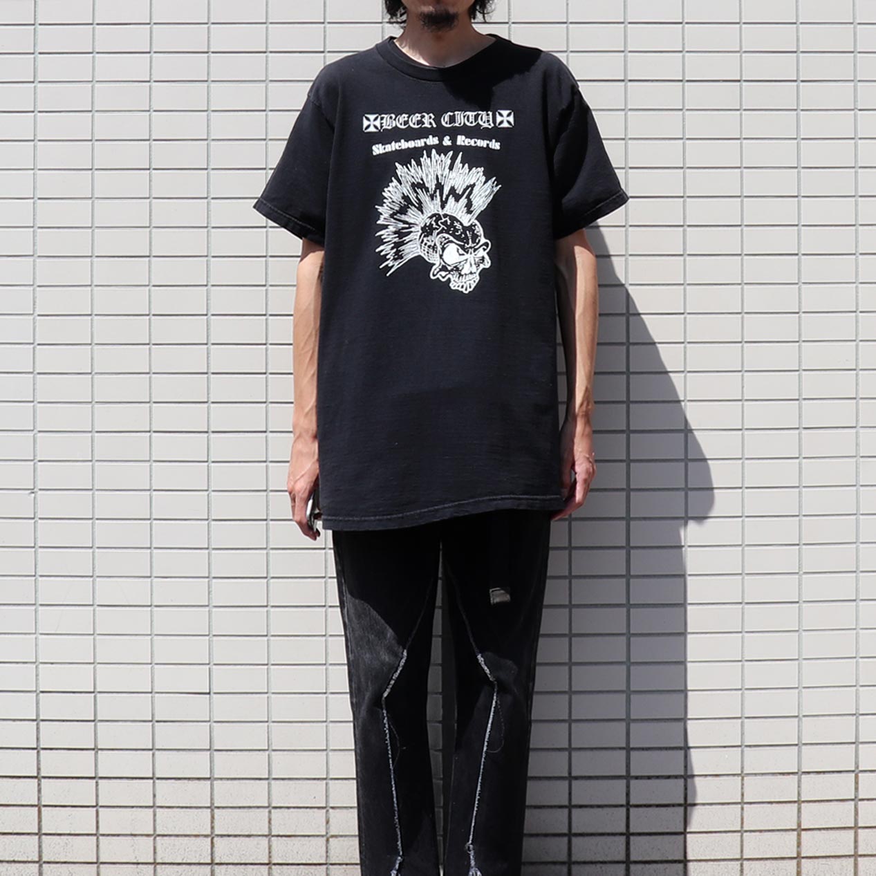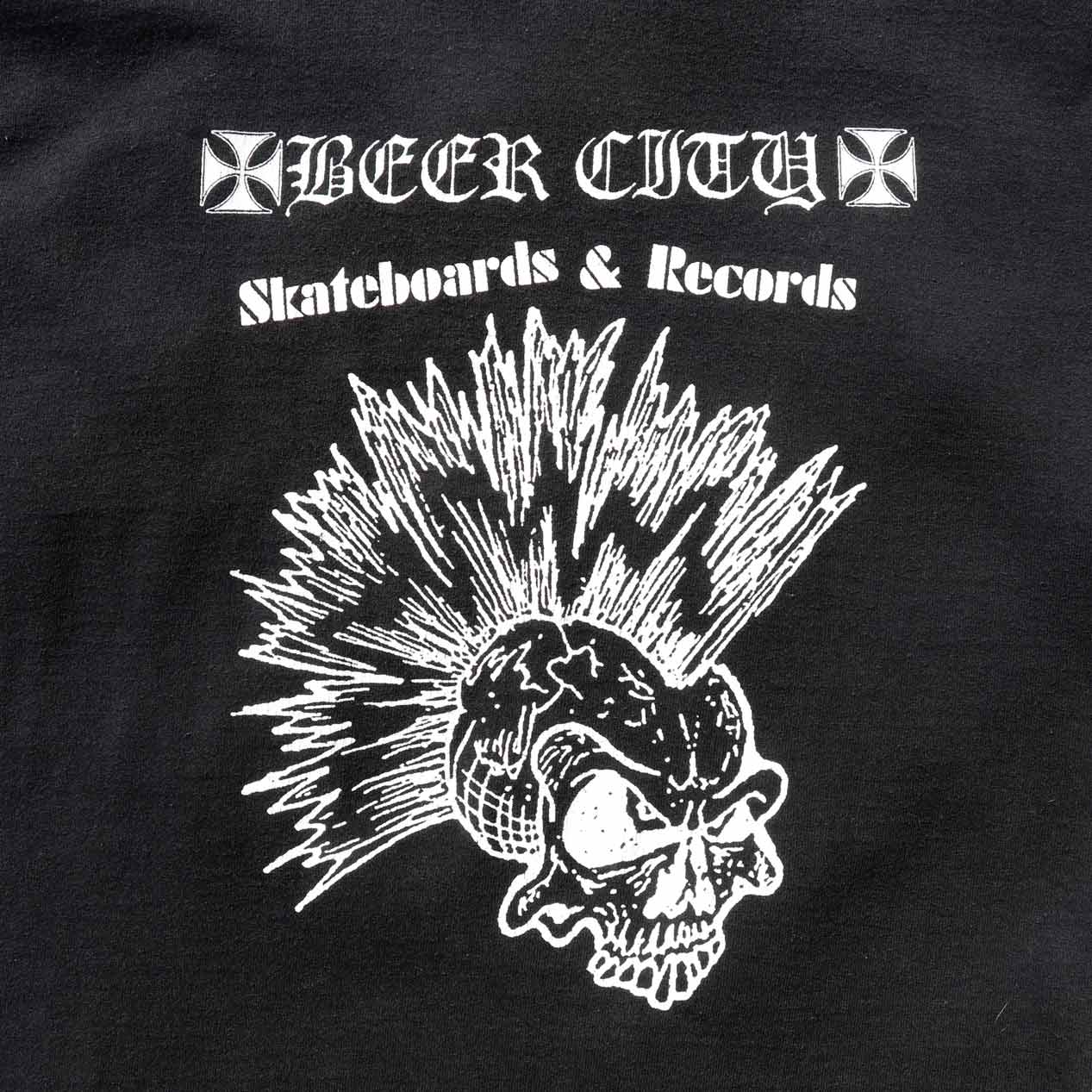 MODEL: BEER CITY SKATEBOARDS & RECORDS T-Shirt MADE IN: Dominican Republic AGE: 90's~ SIZE: L COLOR: ブラック MATERIAL: コットン 100% COMMENT: 90年代~ ビアシティ スケート&レコード