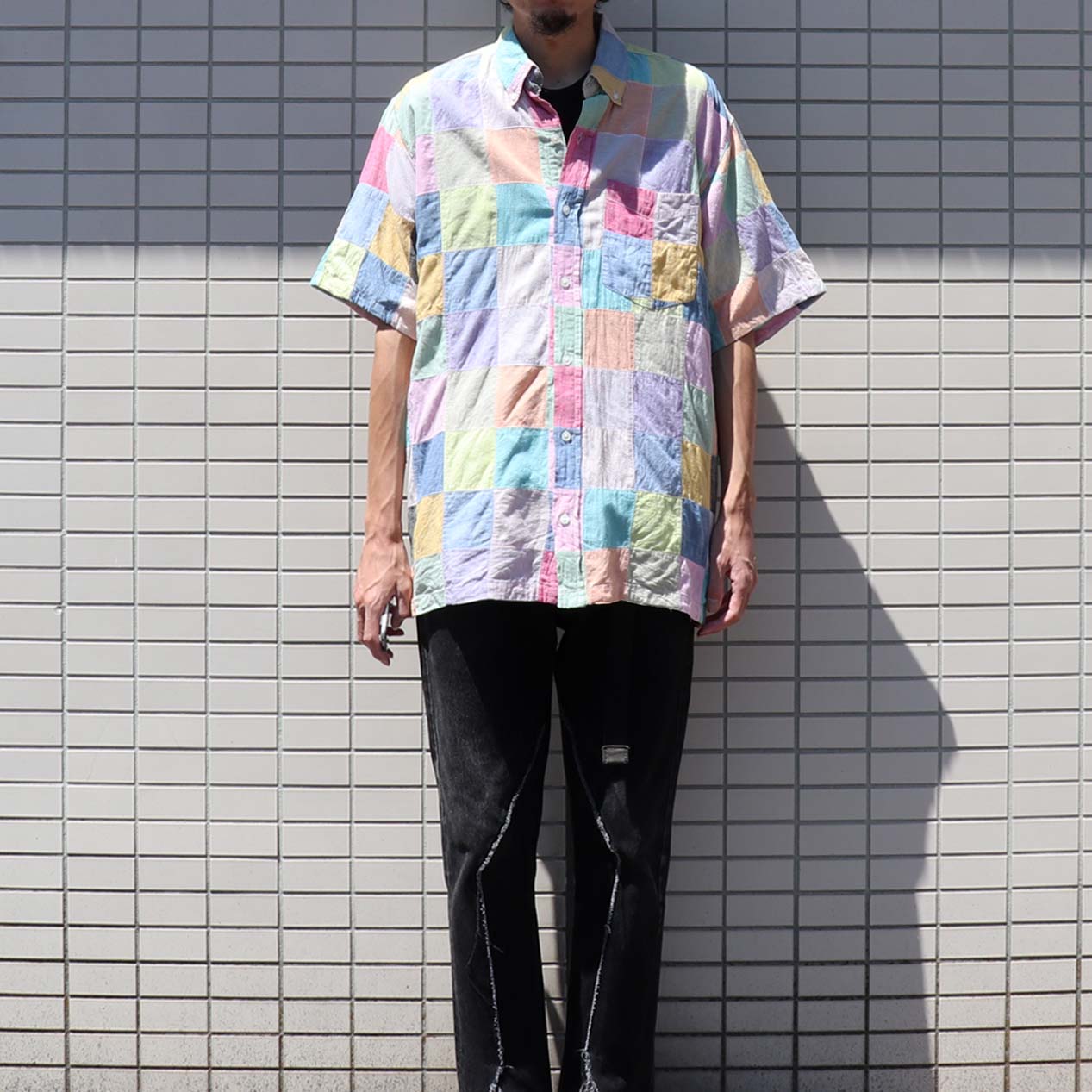 ・90’s JERZEES Patchwork Remade Sweat Cardigan Made In U.S.A. [L]