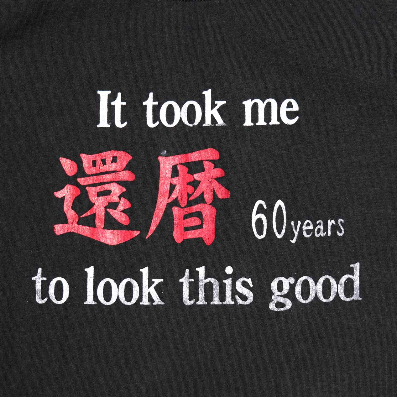 MODEL : 還暦 プリントTシャツ MANUFACTURE : Made In Honduras AGE : 00's~ SIZE : L COLOR : ブラック MATERIAL : コットン 100% COMMENT : 00年代、ヘインズのプリントTシャツです。