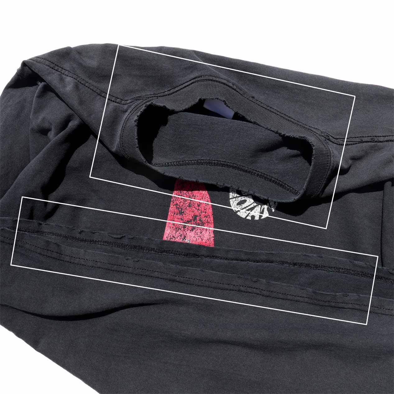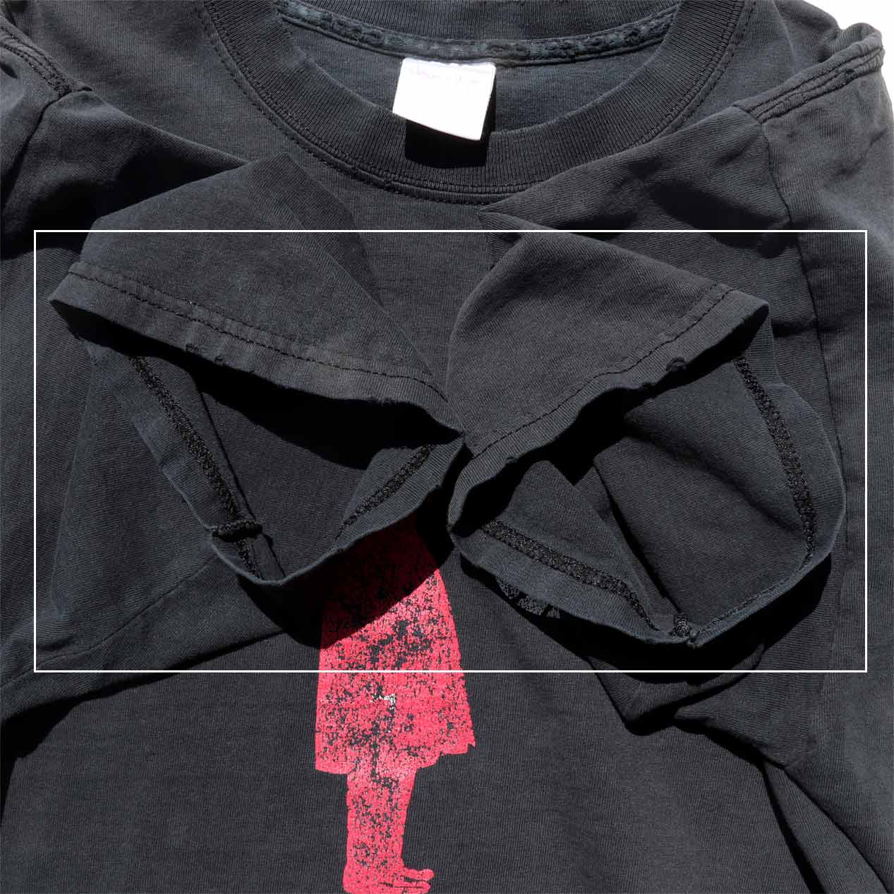 ・全体: 着用感、色褪せ、首リブ・袖口・身頃裾にスレ破れ、プリントカスレ