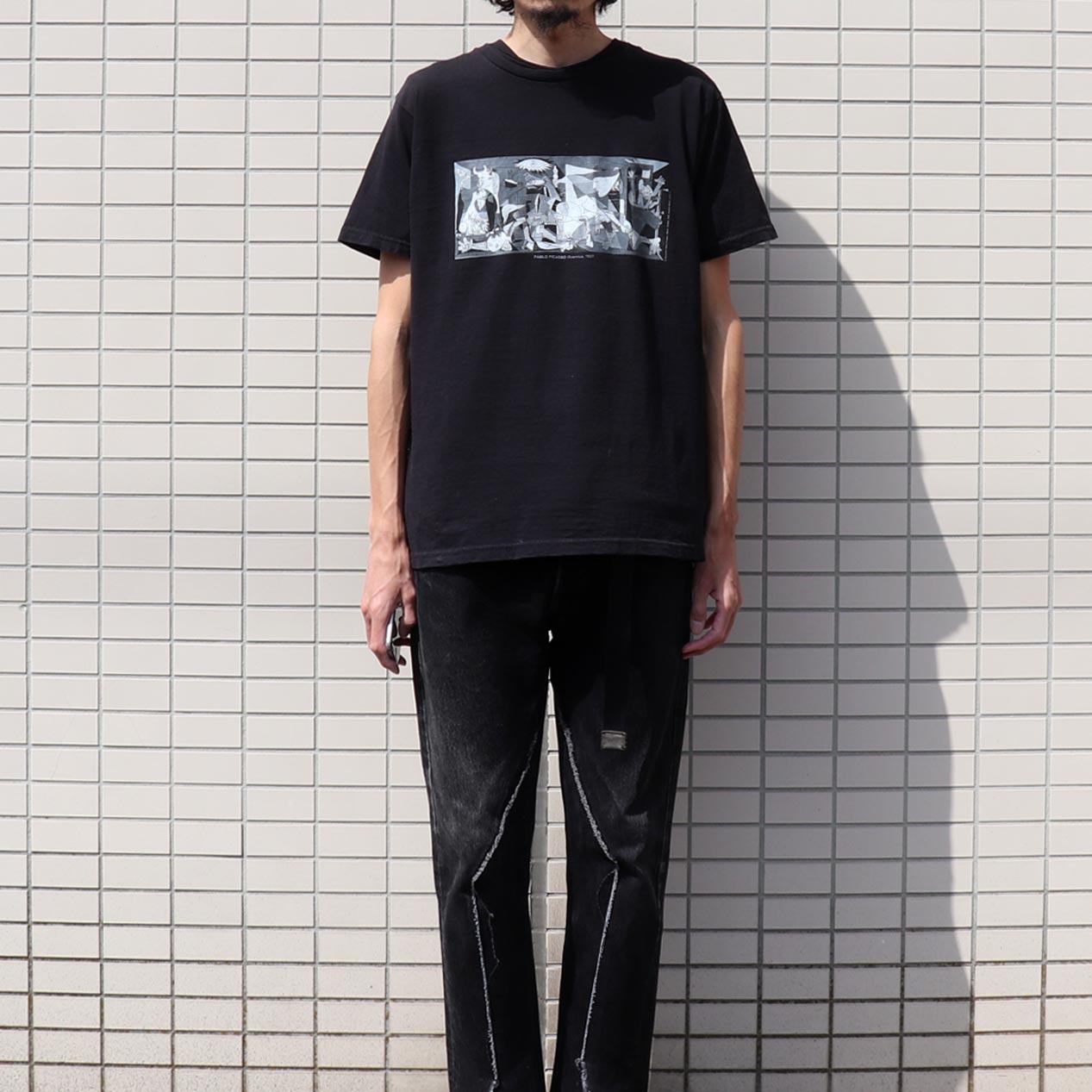 MODEL: PABLO PICASSO “GUERNICA” T-Shirt MADE IN: Morocco AGE: 00's SIZE: L COLOR: ブラック MATERIAL: コットン 100% COMMENT: 00年代 ピカソ ゲルニカ Tシャツ
