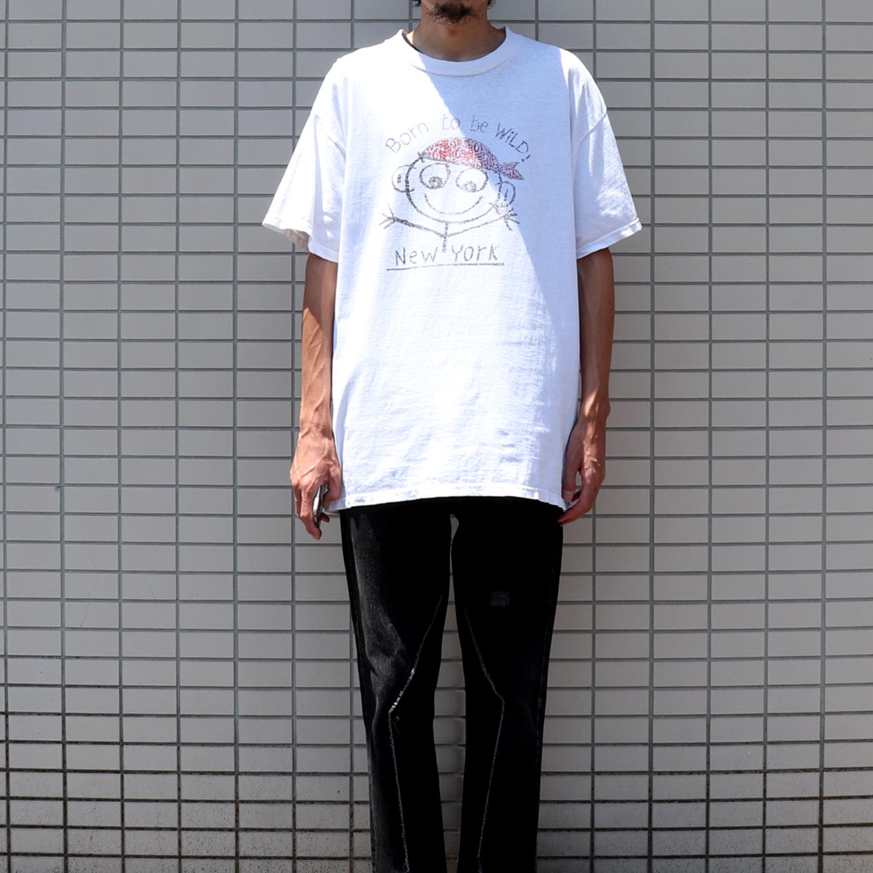 MODEL: BORN TO BE WILD NEW YORK T-Shirt MADE IN: Honduras AGE: 90's~ SIZE: L COLOR: ホワイト MATERIAL: コットン 100% COMMENT: フロントにラバープリント