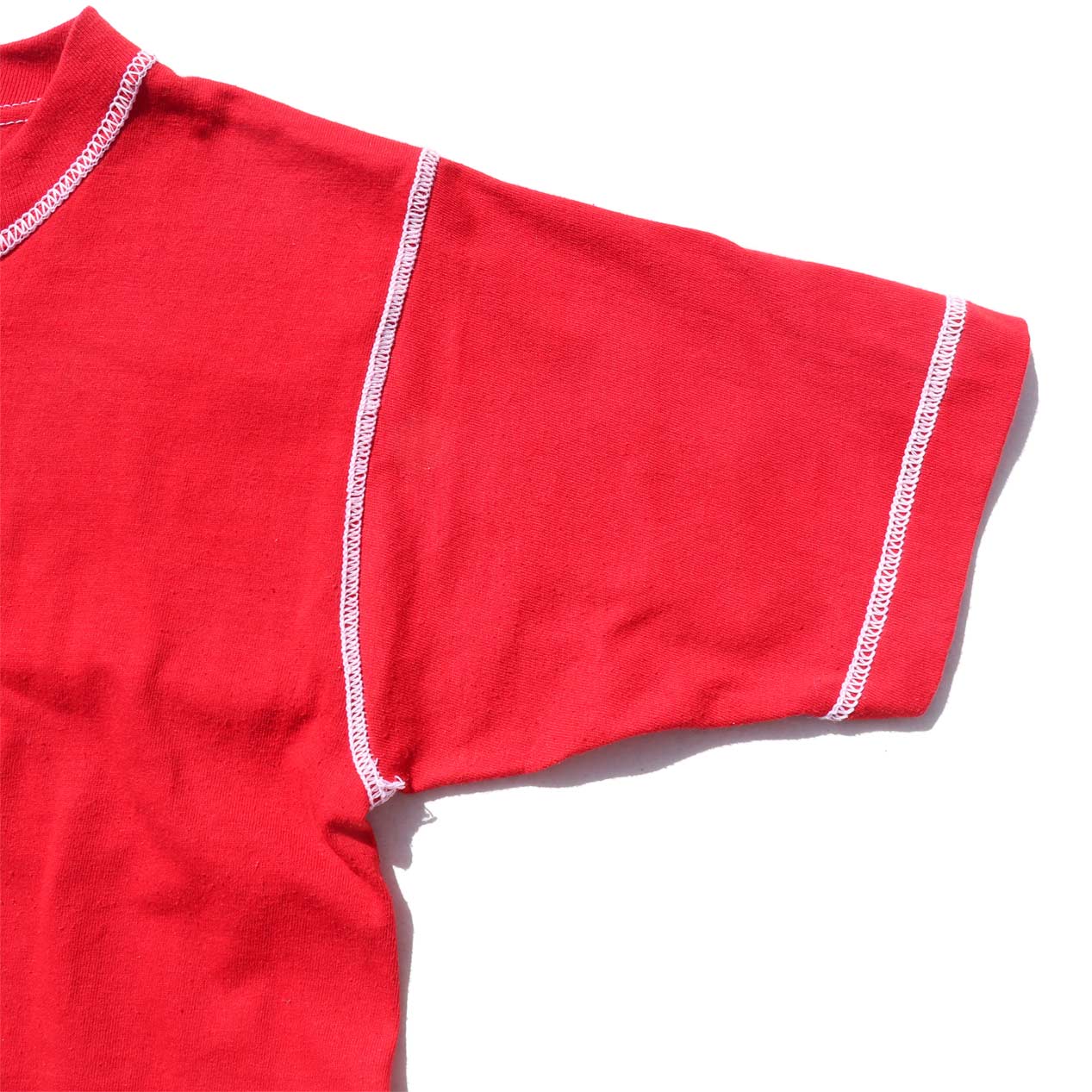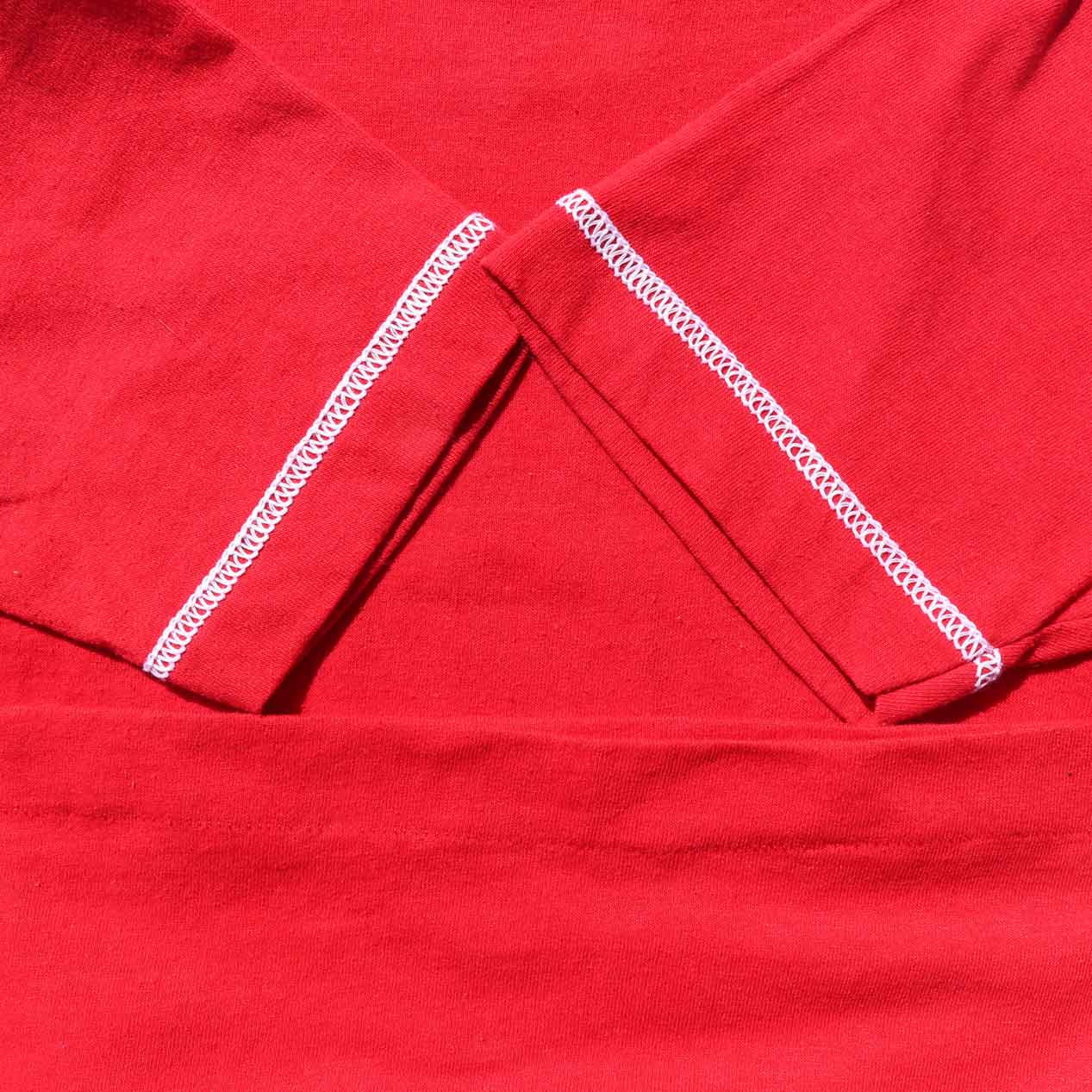 襟ぐり・AH・袖先 2本針表振りステッチ