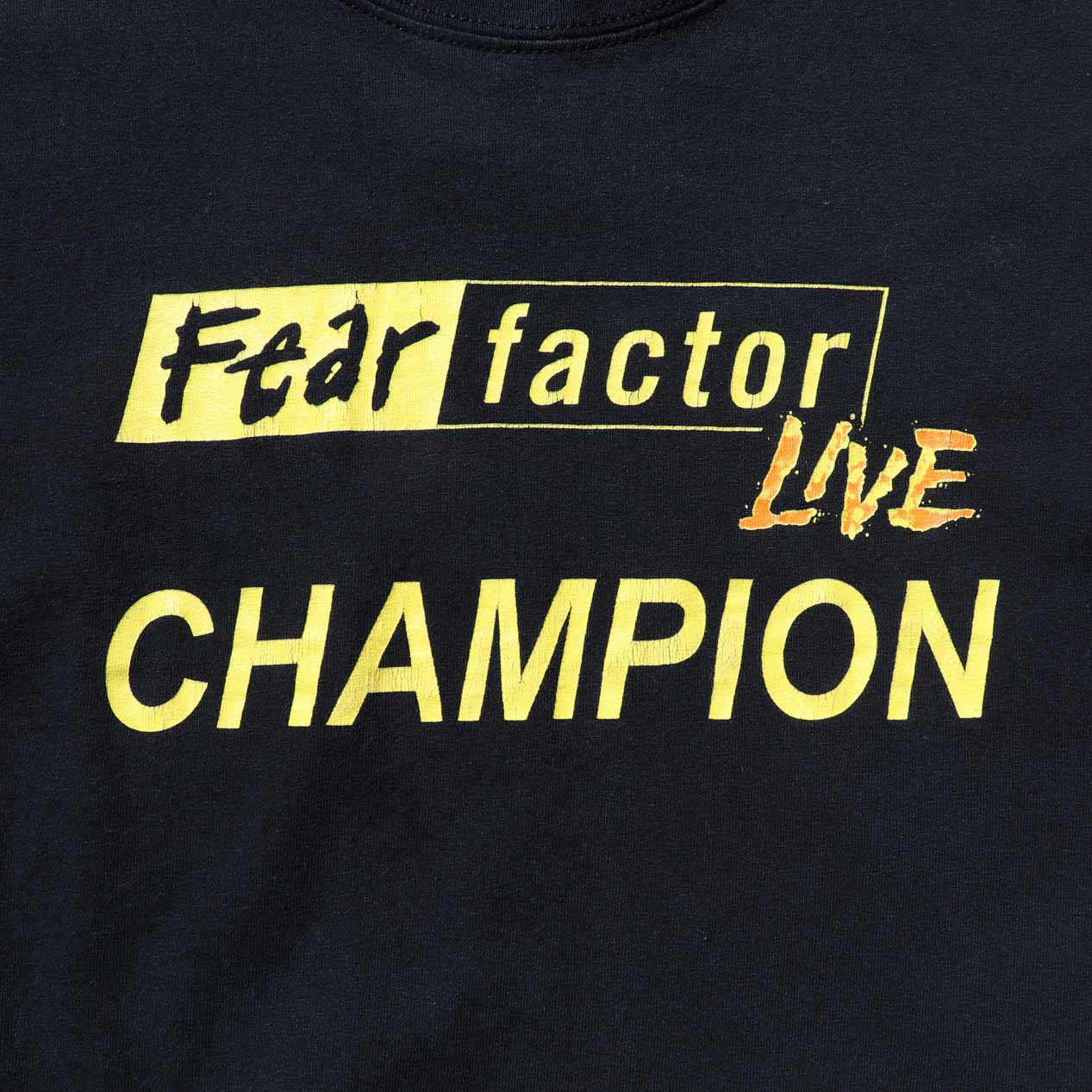 MODEL: FEAR FACTOR LIVE T-Shirt MADE IN: Haiti AGE: 00's SIZE: L COLOR: ブラック MATERIAL: コットン 100% COMMENT: 90年代 フィアーファクターライブ Tシャツ