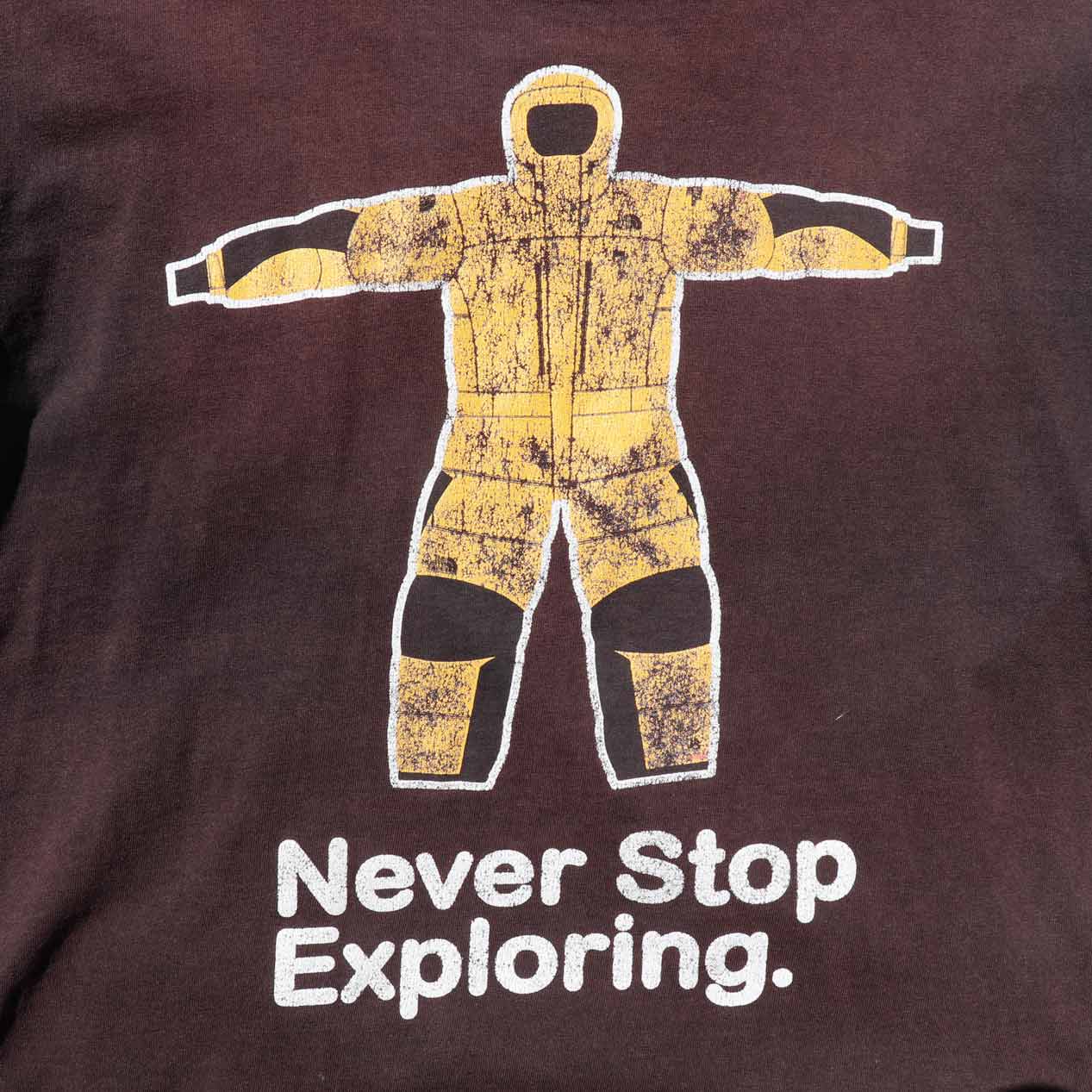 MODEL: THE NORTH FACE Never Stop Exploring T-Shirt MADE IN: El Salvador AGE: 00's SIZE: M COLOR: ブラウン MATERIAL: コットン 94% オーガニックコットン 6% COMMENT: 00年代 ノースフェイス Tシャツ