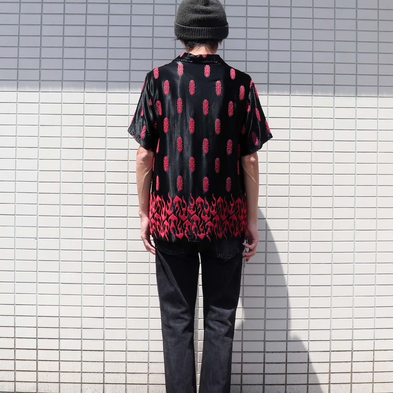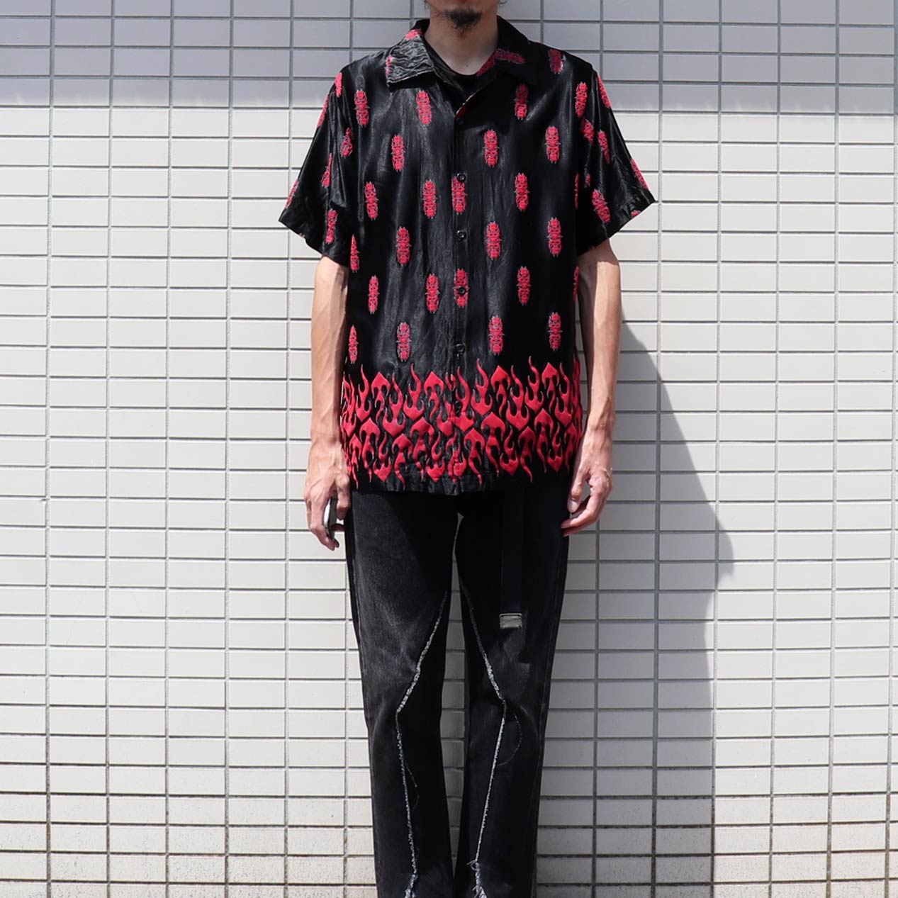MODEL: ODO Flames Flocky Printed Open Collar S/S Shirt