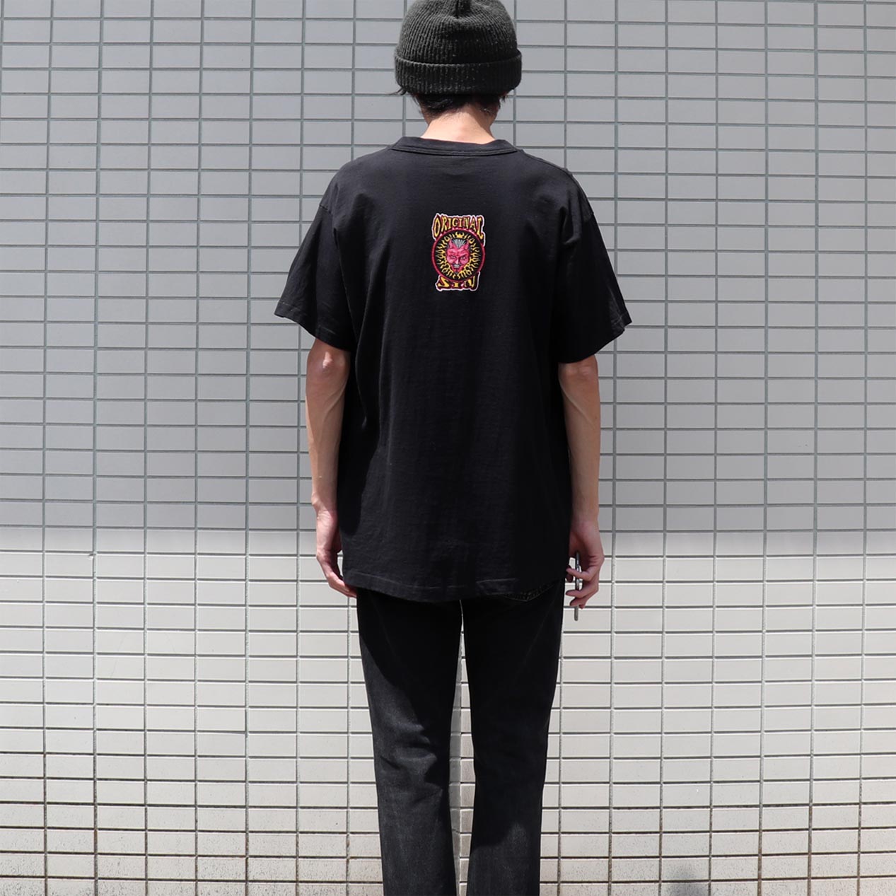 MODEL: ORIGINAL SIN Circle-A T-Shirt MADE IN: U.S.A. AGE: 90's SIZE: L COLOR: ブラック MATERIAL: コットン 100% COMMENT: 90年代 オリジナルシン Tシャツ