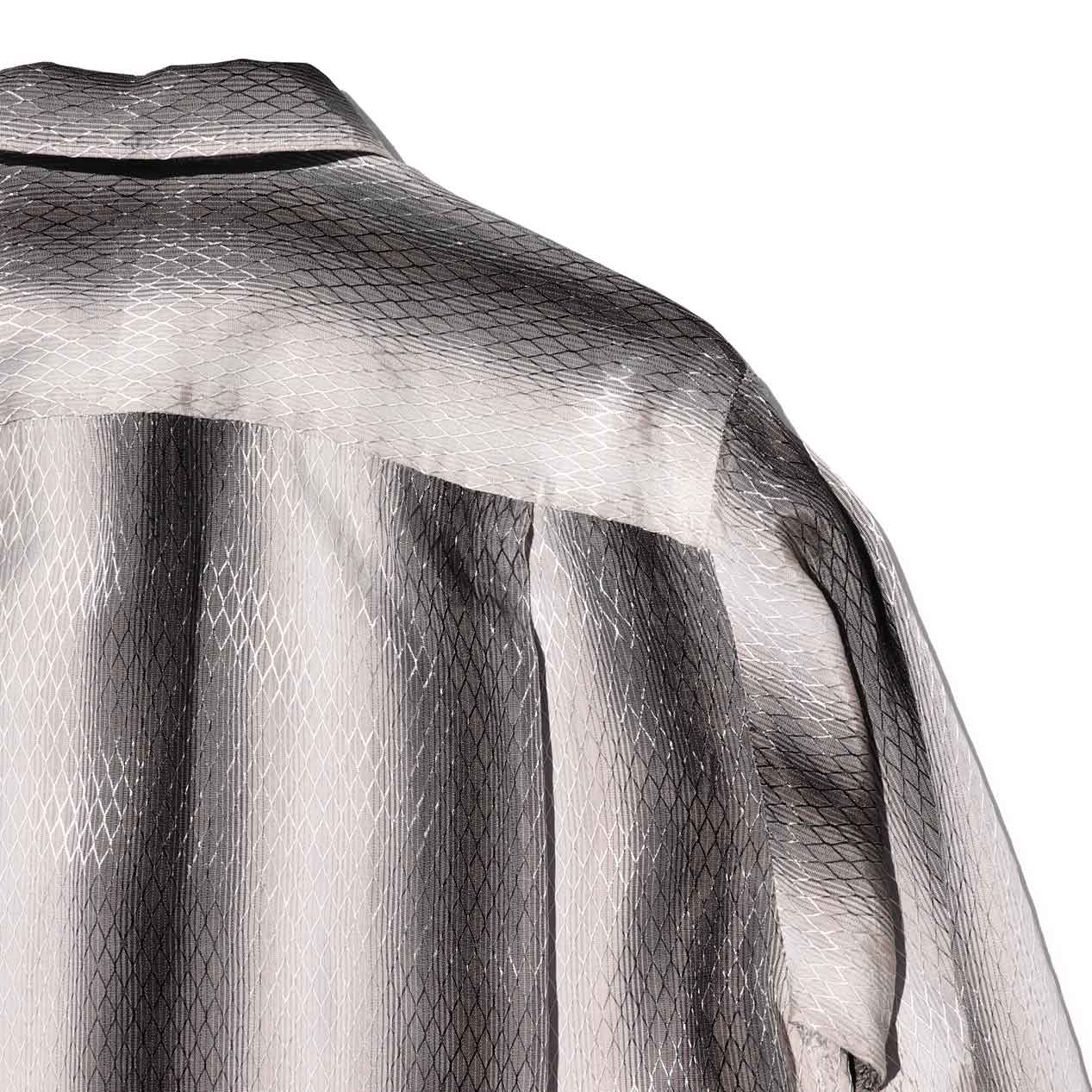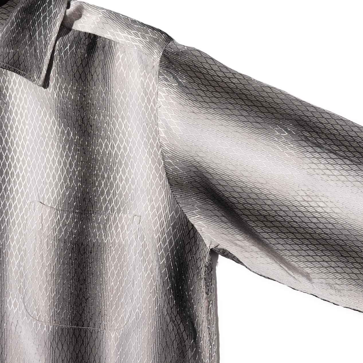 ジャガードで織り込まれた格子柄には若干艶があり、身生地のシャドーストライプに伴って格子柄にもカラーグラデーションが掛かっています。