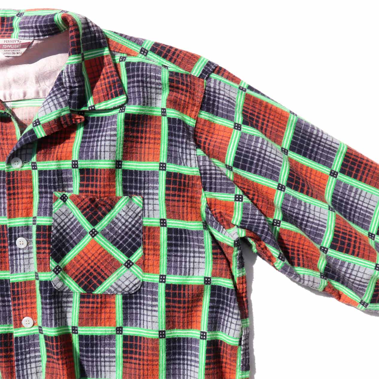MODEL: PENNEY’S TOPFLIGHT Printed Plaid Open Collar Flannel Shirt