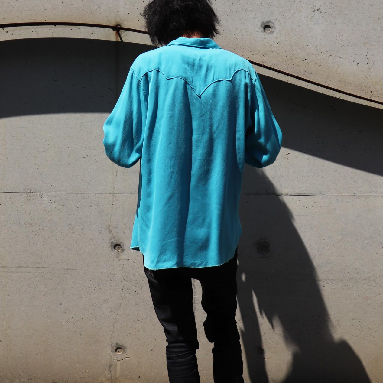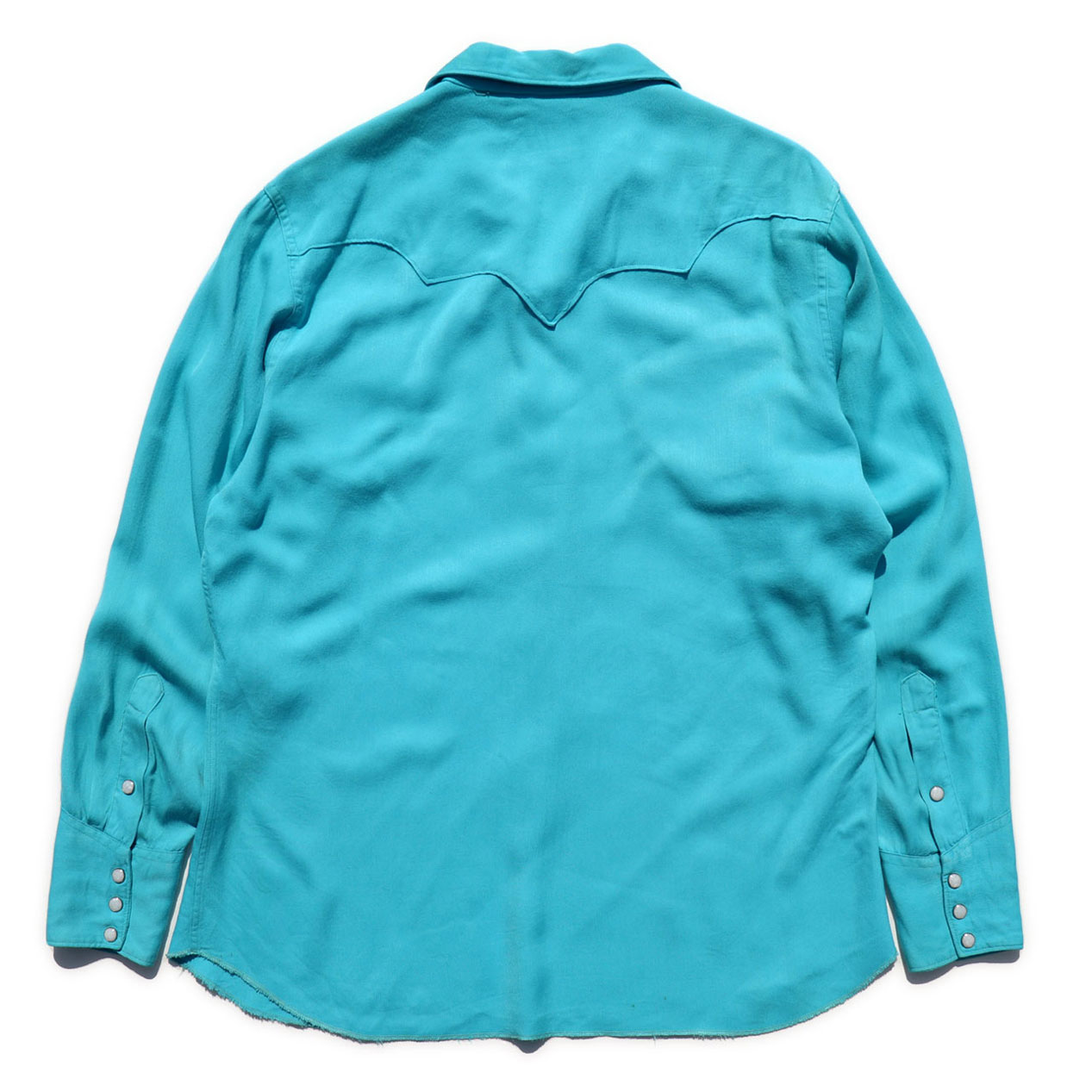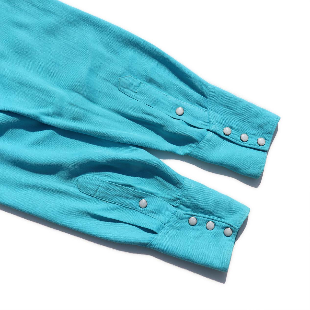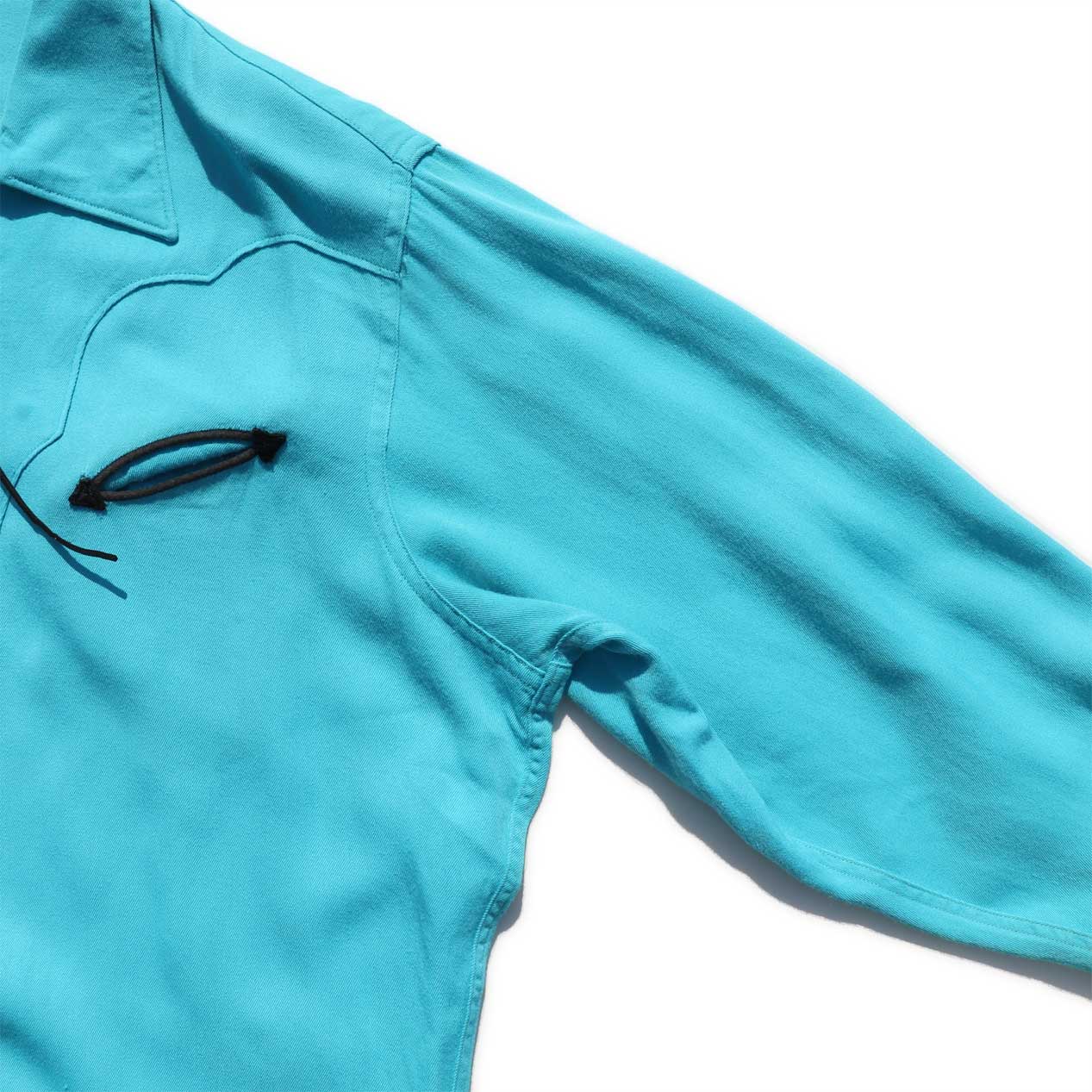 希少なプルオーバー型、生地はターコイズカラーのレーヨンギャバジン。