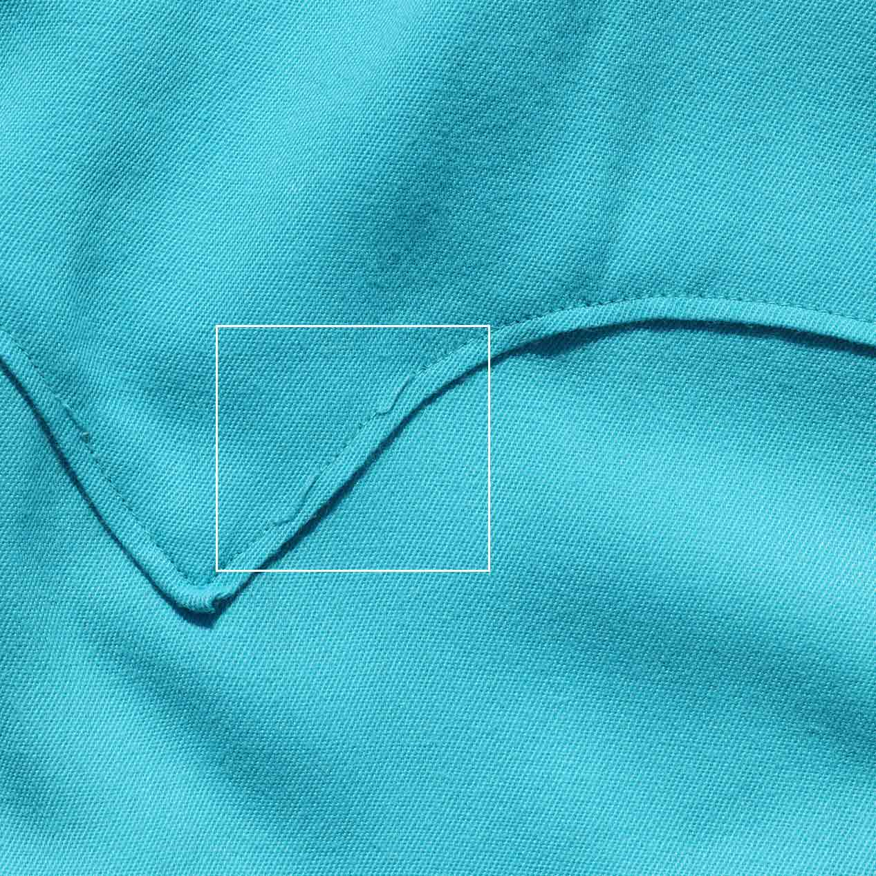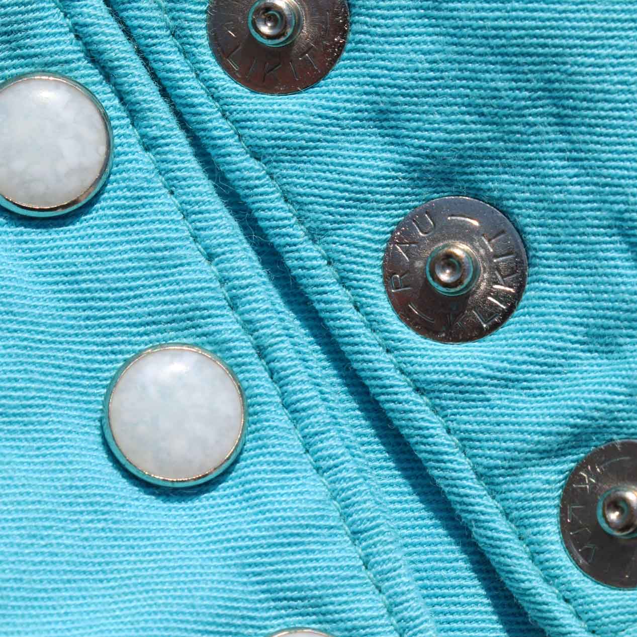 マーブルスナップボタンはRAU KLIKIT、襟は襟芯無し、裾はロック始末です。